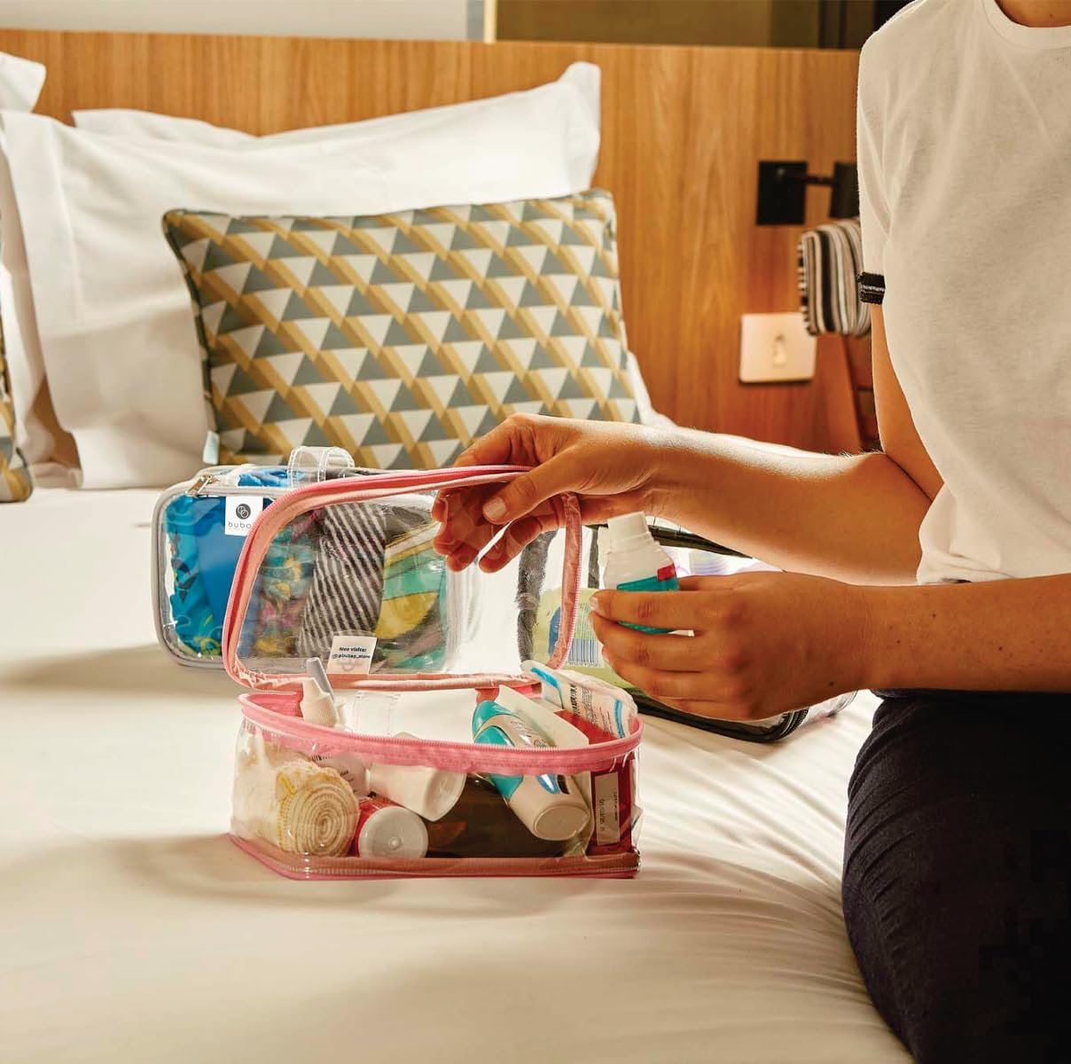 “O Organizador Bubag!, traz mais conforto na organização dos seus acessórios, medicamentos, biquíni, bloco de montar, maquiagem, esmaltes, brinquedos… Organiza de forma individual seus utensílios e otimiza o espaço no seu armário/guarda-roupas e mala, podendo ser empilhados. Ideal para viagens e passeios na organização das bagagens. Podem ser usadas de forma individual como uma nécessaire, pois possui fechamento com zíper e alça.