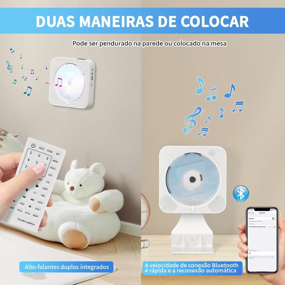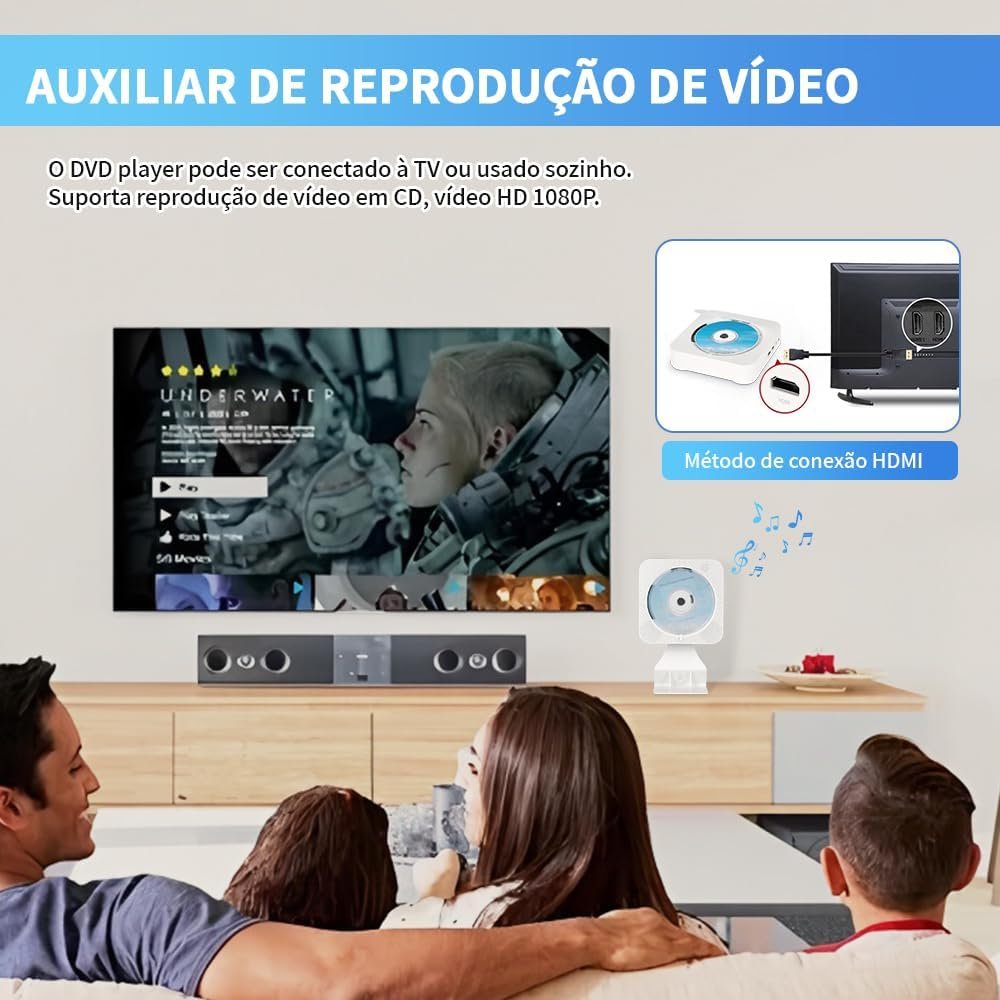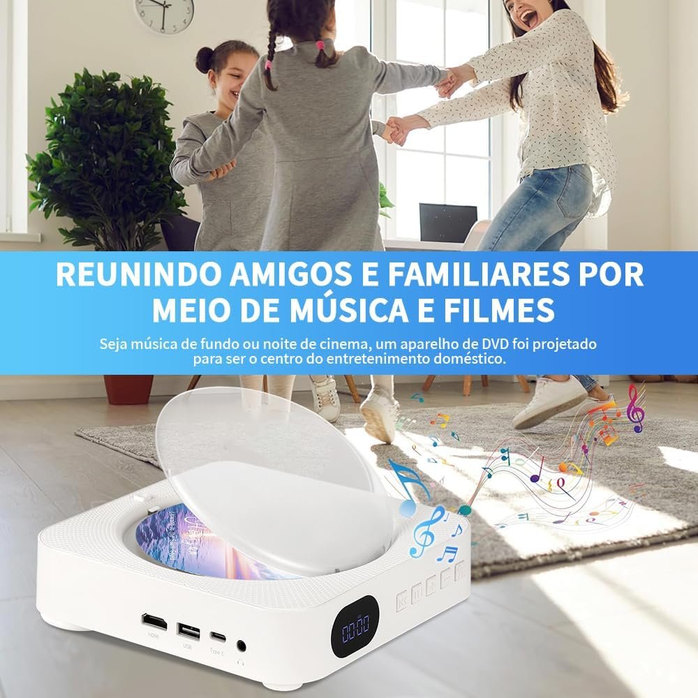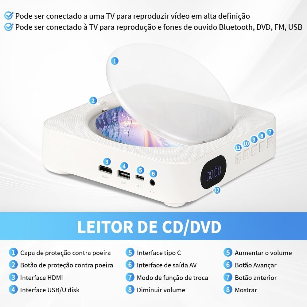 ❖ CD/DVD TUDO EM UM ❖ Design multifuncional, CD/DVD player compacto e elegante, compatível com CD, VCD, DVD. Ele não só reproduz discos, mas também insere pendrives ou cartões de memória SD para reprodução; pode reproduzir música através de conexão de celular e está equipado com um controle remoto.
