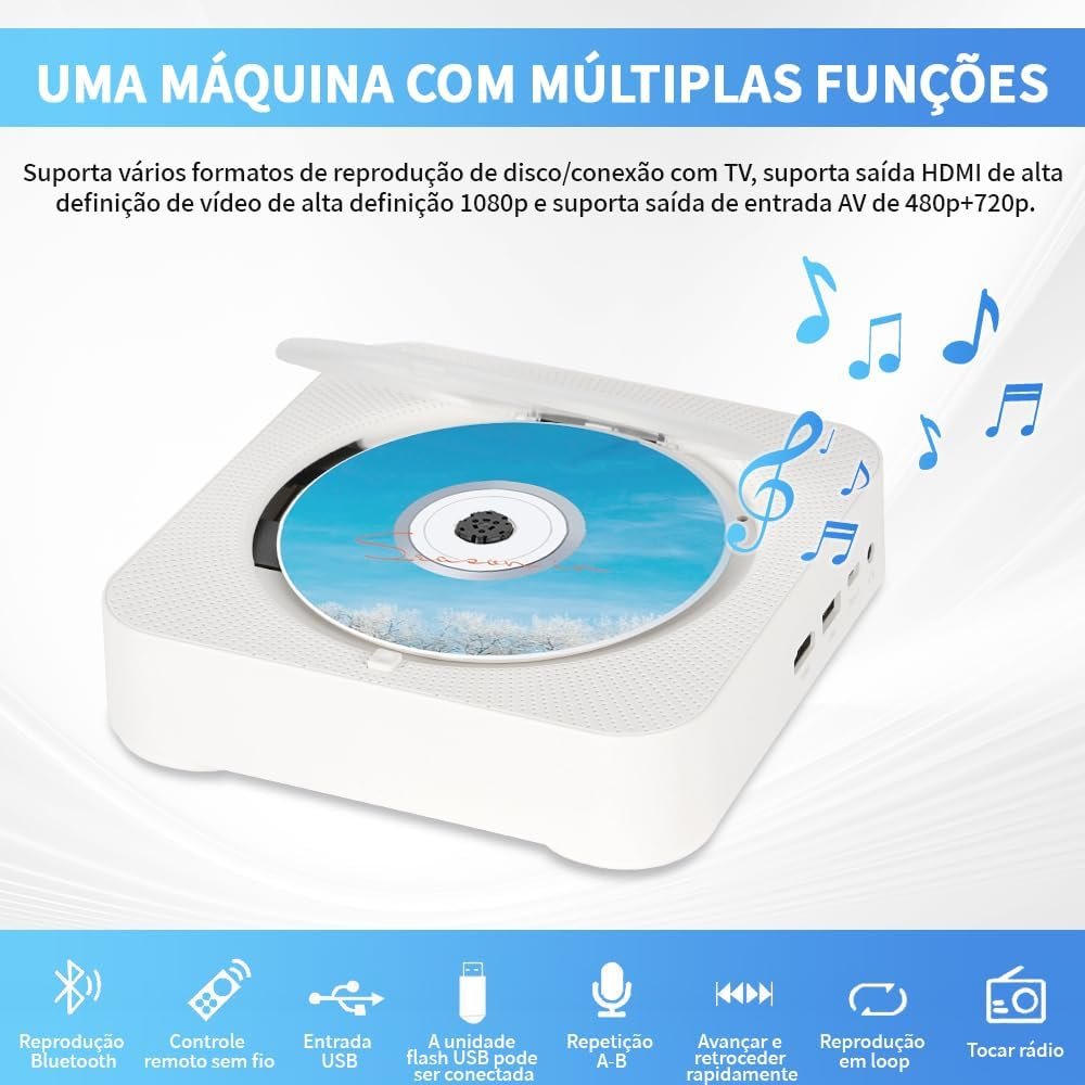 100-240V, CD Player, DVD Player, CD Player Portatil, DVD Player HDMI, Leitor de CD E DVD Externo, Leitor de CD/DVD Multifuncional, Suporta Saída HDMI HD 1080P, Alto-Falantes Integrados