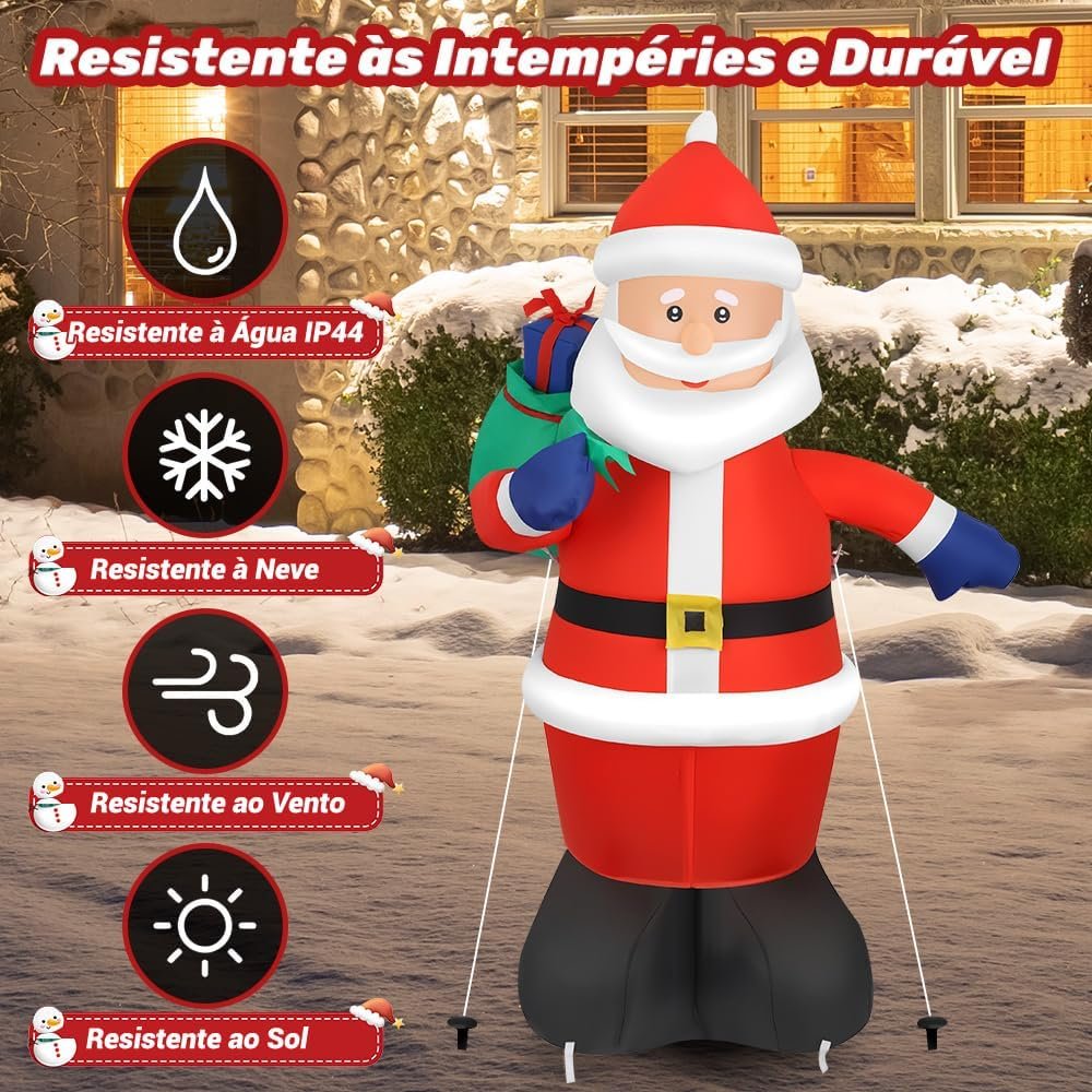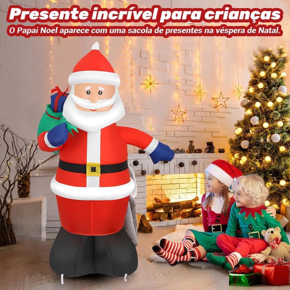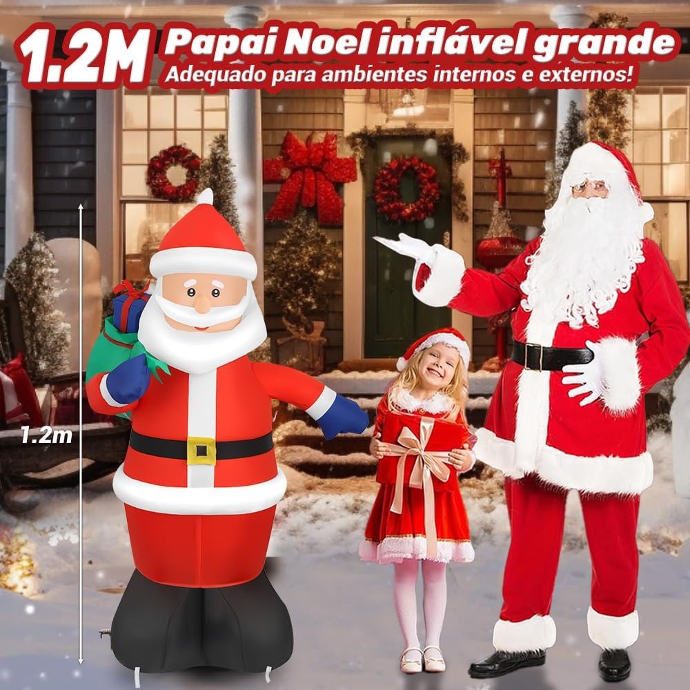 1,2M Papai Noel, 100-240V, Decoração de Natal, Enfeite de Natal, Papai Noel Inflável, Luzes Led Embutidas, para Casa Shopping Loja Condomínio, Contém Corda Fixa E Bolsa de Agua