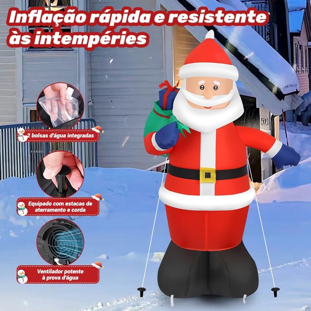 ◉ RONTO PARA USAR, INCLUI UM SOPRADOR ◉ Este Papai Noel de 1,2 metro de altura vem com um soprador de alta qualidade de 110-240 V. Basta conectá-lo a uma tomada e ele infla em 1 a 2 minutos. Mantenha-o conectado o tempo todo. Desconecte-o, abra o zíper inferior e o Papai Noel esvaziará automaticamente.