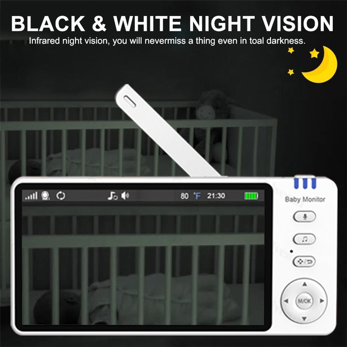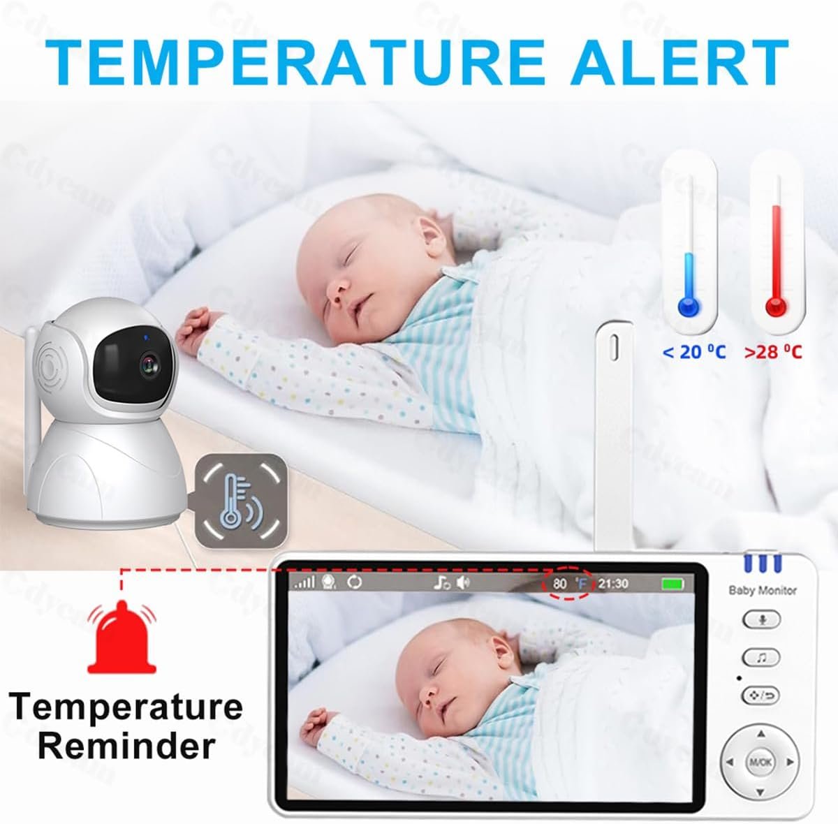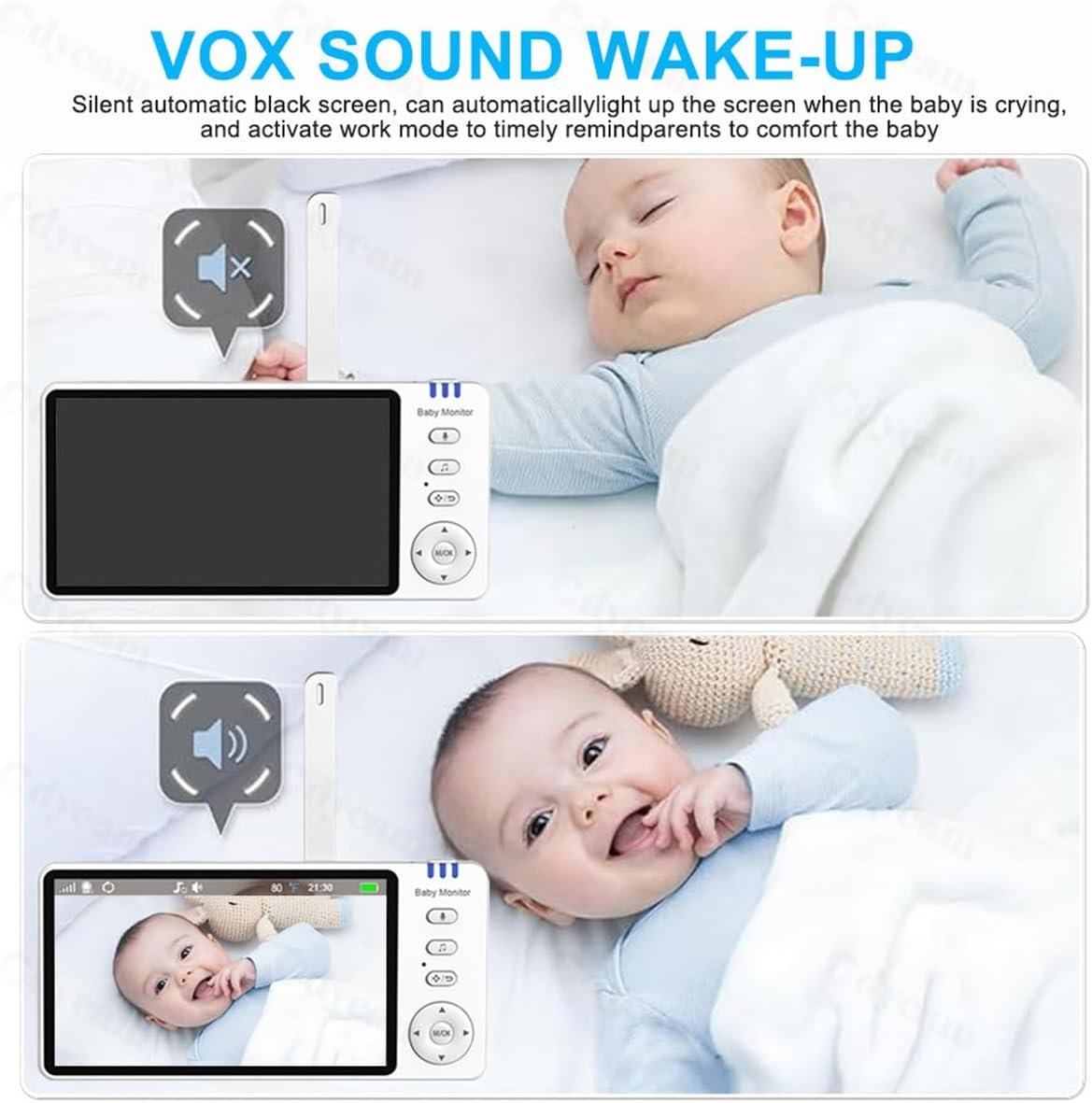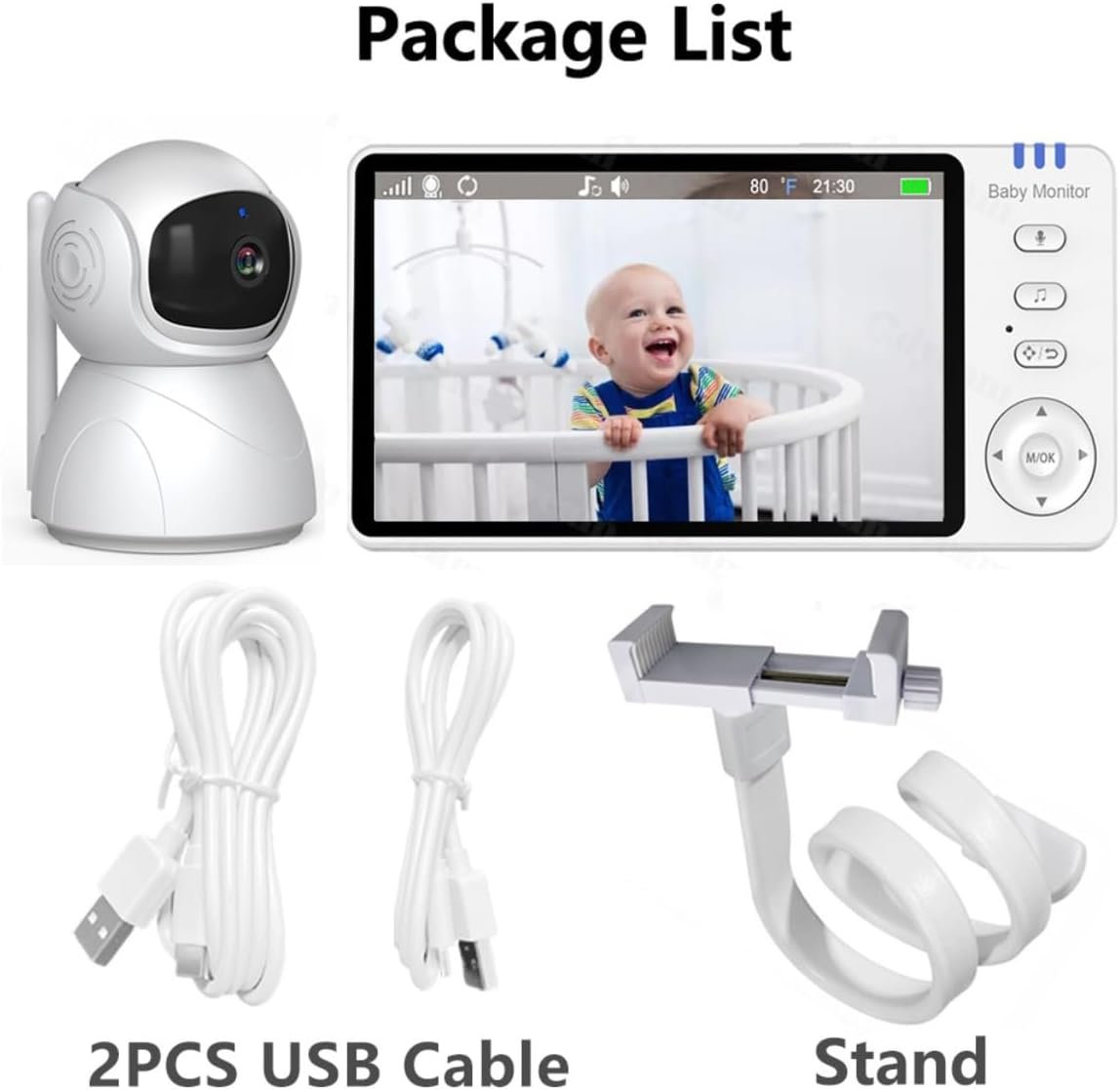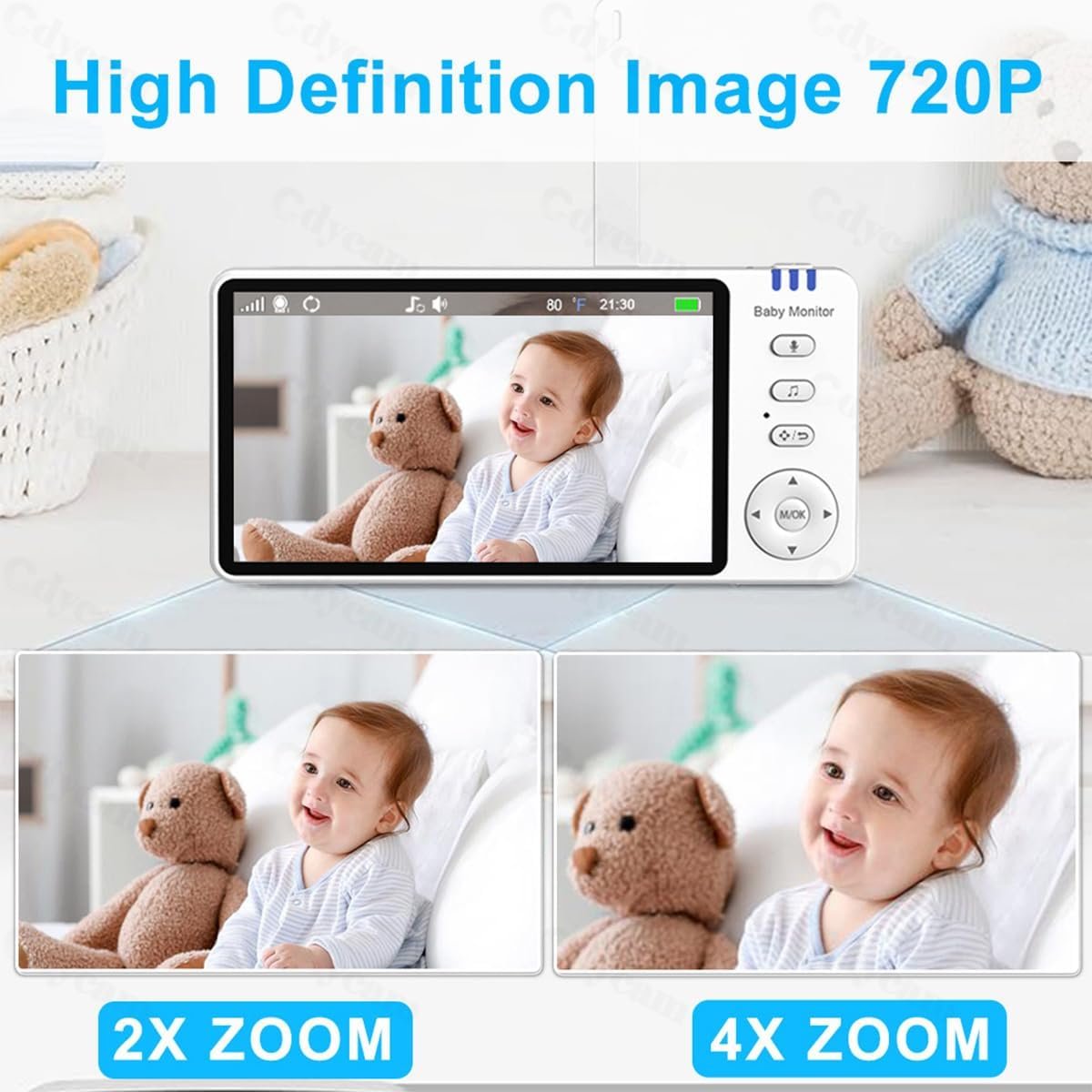 5.0″ Babá Eletronica, 720P Monitor de Bebe com Tela, 4X Zoom Digital, Áudio Bidirecional, Monitoramento Temperatura, Visão Noturna, Incluindo o suporte da câmara, Detecção De Som Vox,8 peças de música