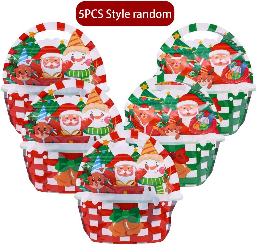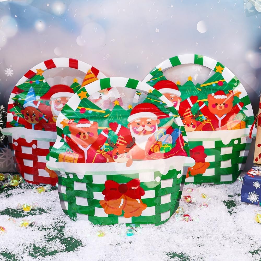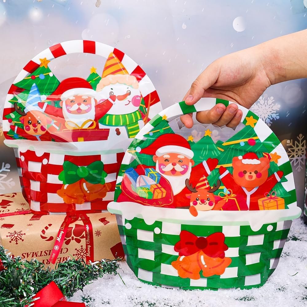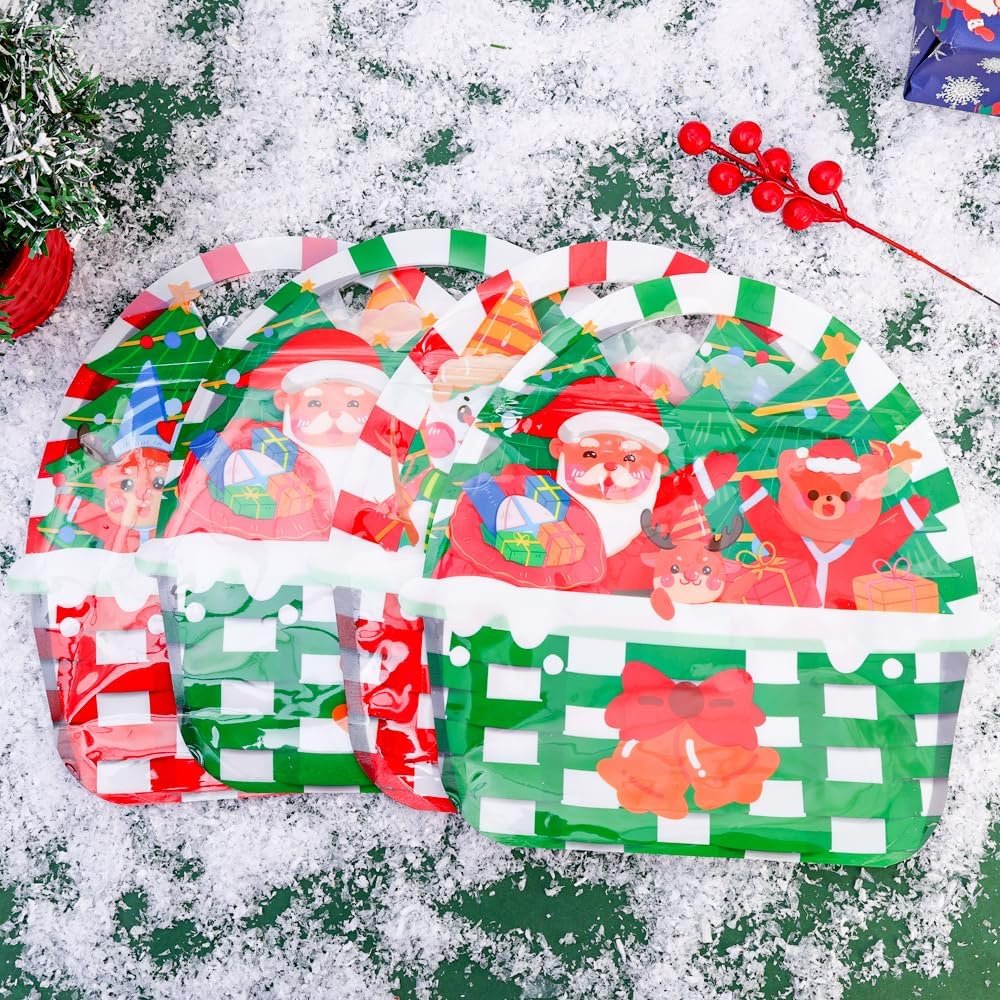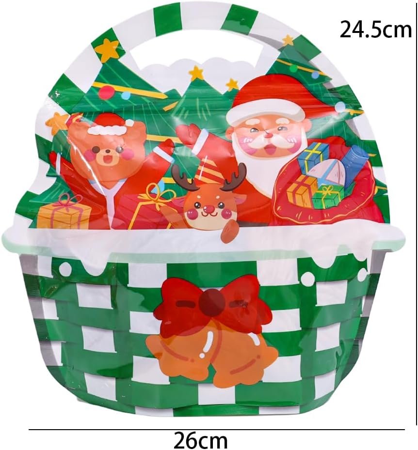 [Material PET]: nossas sacolas de presente em forma de cesta de Natal são feitas de material PET, que é bem conhecido por sua força e respeito ao meio ambiente, garantindo que as sacolas de presente sejam de alta qualidade e reutilizáveis.