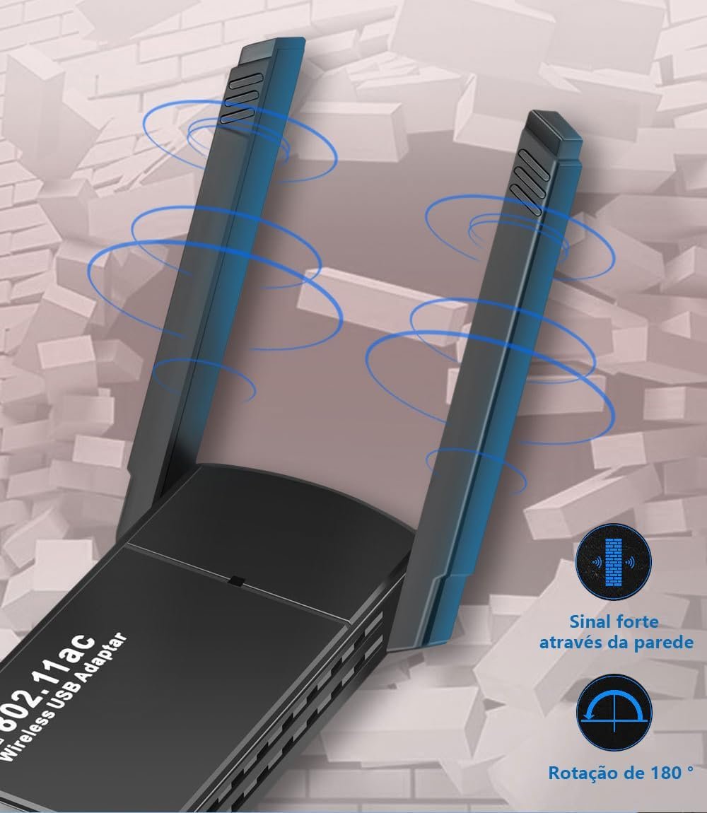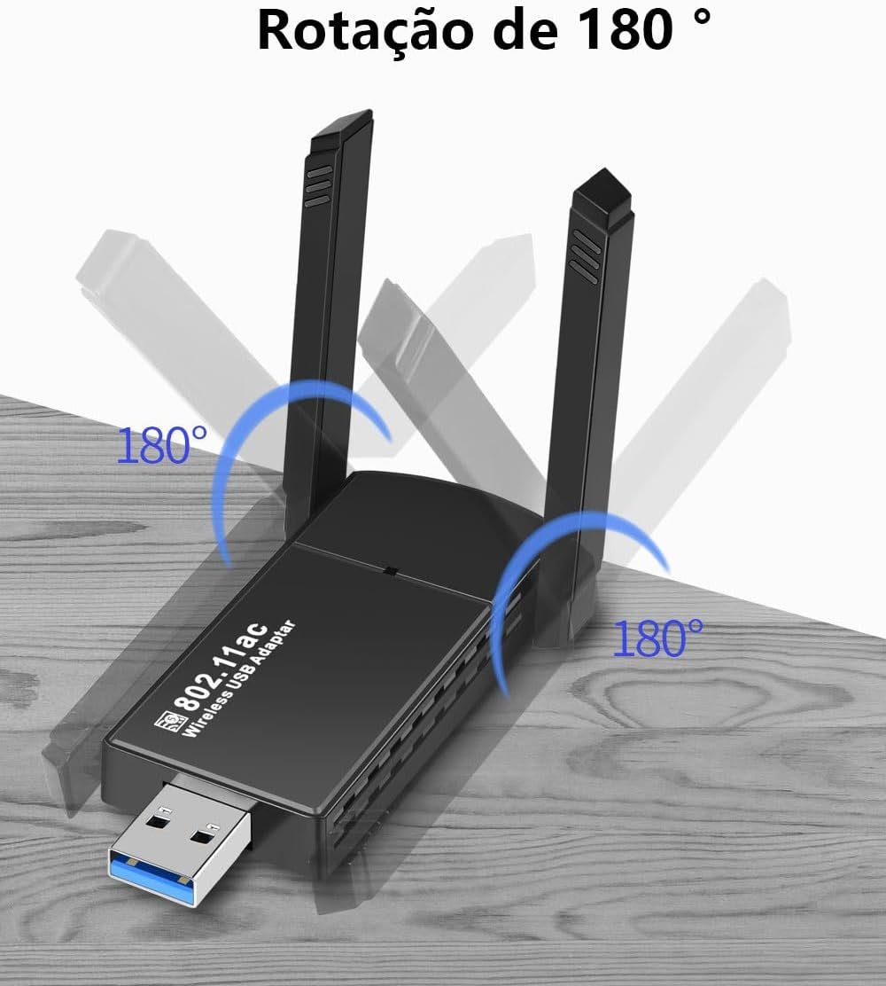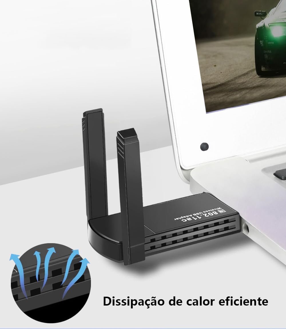 Adaptador WiFi USB 3.0, Dual Band 5GHz e 2.4GHz, 1300Mbps, Duas Antenas
