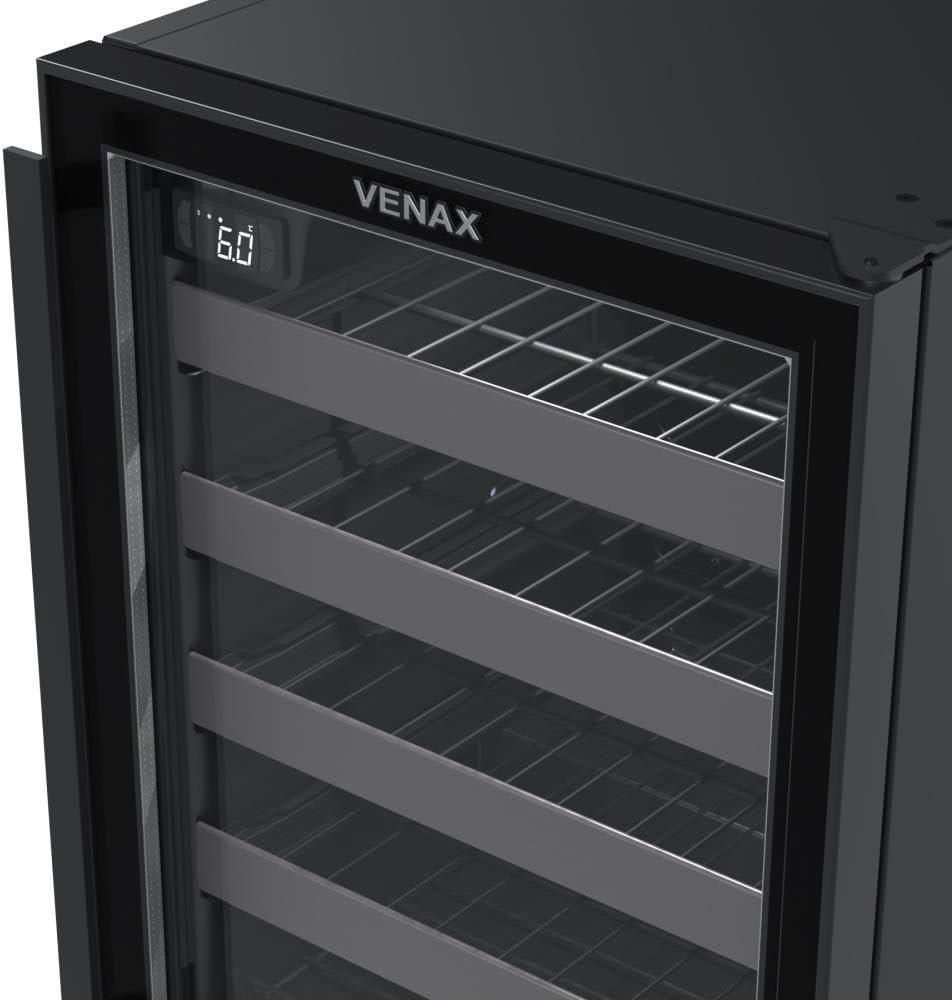Apresentamos a sofisticada adega Venax, uma combinação de design elegante e funcionalidade avançada. Com controle digital de temperatura entre 6°C e 20°C, iluminação interna em LED, e capacidade para 24 garrafas, oferece o ambiente perfeito para seus vinhos. Características Marca: Venax Modelo: Cave In Linha: 100 Ref.: 27717 Tensão: 220V Cor: Preto Tipo: Adega Tipo de Instalação: Embutir Frequência: 60Hz Isolamento Térmico: Poliuretano Etiquetas: Selo de Segurança Potência: 145W Volume Líquido: 82L Controlador de Temperatura: Digital, Regulável (6°C a 20°C) Iluminação Interna: LED Branco Porta: Vidro Duplo (LOW-E) Aquecimento da Porta: Não Puxador da Porta: Alumínio Abertura da Porta: Esquerda para Direita Trava de Abastecimento: Não Degelo: Natural Dreno: Traseiro Recipiente de Degelo: Sim Prateleiras: 4 Deslizantes e 1 Fixa Evaporador: Sem Ar Forçado Sistema de Refrigeração: Compressor Gás Refrigerante: R134a Pés: Frontais Reguláveis e Traseiros com Rolete Gabinete Interno: PSAI Gabinete Externo: Aço Revestido com Pintura Eletrostática Capacidade de Armazenamento: 24 Garrafas / ø Máx.90mm. Dimensões Aproximadas do Produto (LxAxP): 49 cm x 79 cm x 61 cm Peso Líquido: 34,0 kg Importante: Imprescindível à conferência no ato da entrega. Em caso de anormalidade, recuse o recebimento. As imagens correspondem aos produtos apresentados, porém, são ilustrativas e podem sofrer variações de acordo com a resolução de seu monitor, iluminação ou ainda, percepção visual. Os objetos decorativos das imagens não acompanham os produtos. Todas as informações divulgadas são de responsabilidade do fabricante, podendo sofrer alterações sem nenhum aviso prévio. Garantia de 12 meses contra defeitos de fabricação, de acordo com as normas do fabricante.