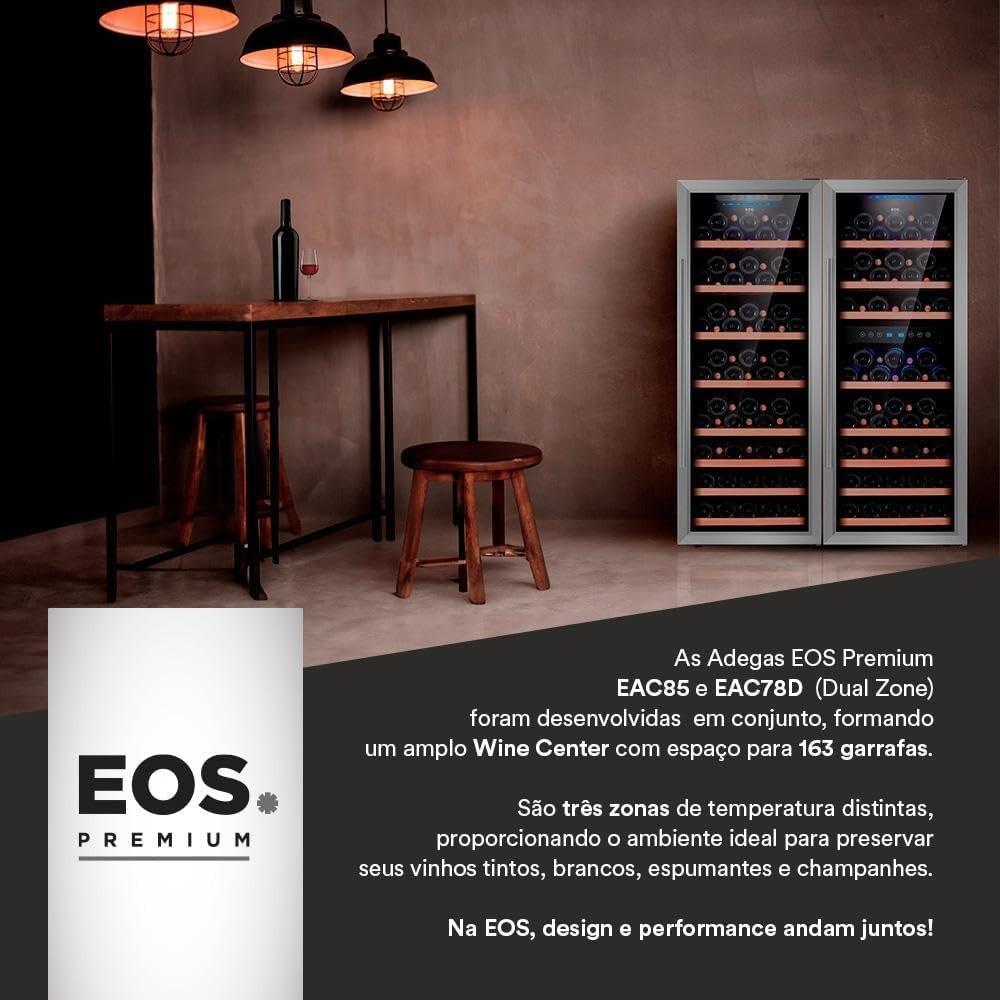 Transforme sua experiência de armazenamento de vinhos com a sofisticada Adega Climatizada de Embutir EOS Premium com Compressor EAC85. Projetada para os amantes do vinho que valorizam a qualidade e o design, esta adega oferece capacidade para 85 garrafas, proporcionando um ambiente ideal para a preservação e maturação de suas preciosas coleções.