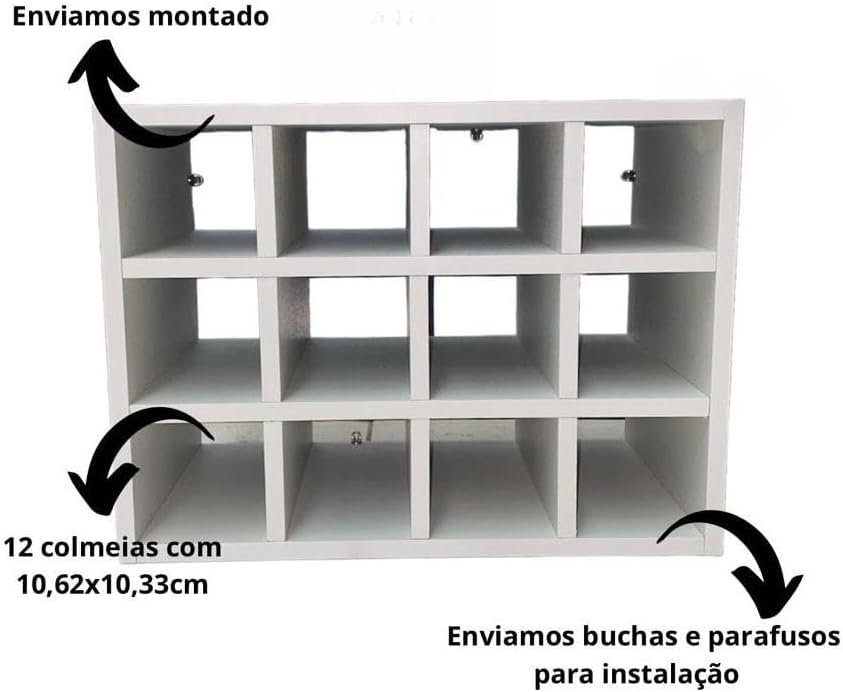 Medidas: 35cm de altura, 46cm de largura e 30cm de profundidade, cada Colmeia tem um espaço livre de 9,5cmx9,5cm