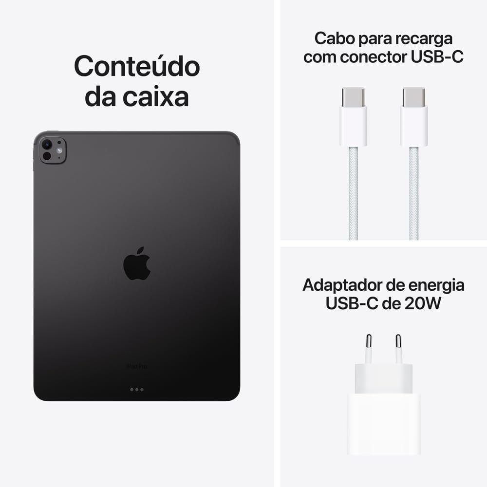 POR QUE IPAD PRO — O iPad Pro é a experiência definitiva em iPad, com um design extremamente fino e leve. Ele tem a revolucionária tela Ultra Retina XDR, o desempenho absurdo do chip M4, conexões sem fio de alta velocidade e é compatível com o Apple Pencil Pro. Além de todos os recursos de produtividade do iPadOS.