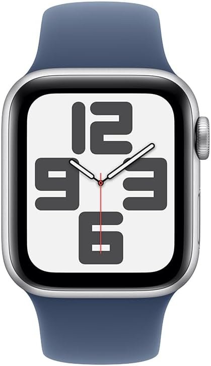 Apple Watch SE GPS • Caixa prateada de alumínio – 40 mm • Pulseira esportiva denim – P/M