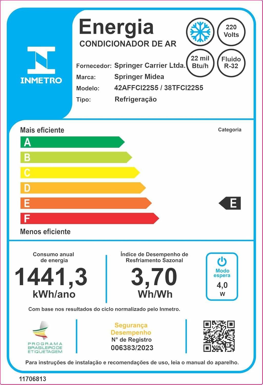 Sustentável e eficiente: utiliza gás ecológico R32, com alto desempenho e baixo impacto ambiental.