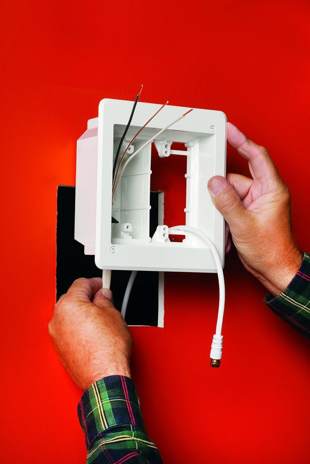 Esta caixa de TV embutida é projetada especificamente para ajudar a organizar fios para TVs e aparelhos de som. A maioria das caixas elétricas são feitas para baixa tensão ou alta tensão, mas esta caixa tem ambos! Permite que você monte TVs LCD e plasma alinhadas à parede. Oferece uma instalação segura, com boa aparência. A placa de acabamento texturizada está incluída e pode ser pintada para cobrir as bordas do drywall cortado. Ele usa suportes de asa resistentes que automaticamente se encaixam no lugar para apertar na parede. Pode ser usado com paredes de até 3,5 cm de espessura. Não há oscilação depois que a caixa é instalada. Ele também vem com uma tomada e uma placa para você começar. Os acessórios de Arlington são cuidadosamente inspecionados e nosso processo de fabricação é projetado para evitar a possibilidade de um produto defeituoso sair de nossa fábrica. No caso de algum dos nossos produtos apresentar defeito, iremos substituí-los por novos produtos gratuitamente. O prazo para esta garantia é de um ano após a data de venda ou um ano após a data de instalação, consoante a data anterior. Esta garantia não se aplica quando o produto é usado para qualquer finalidade que não seja o uso pretendido, conforme descrito na literatura de Arlington. Esta garantia não se aplica quando o produto é usado para qualquer instalação que viole o código elétrico nacional ou qualquer código que tenha precedência em uma jurisdição específica. Mão de obra não incluída.