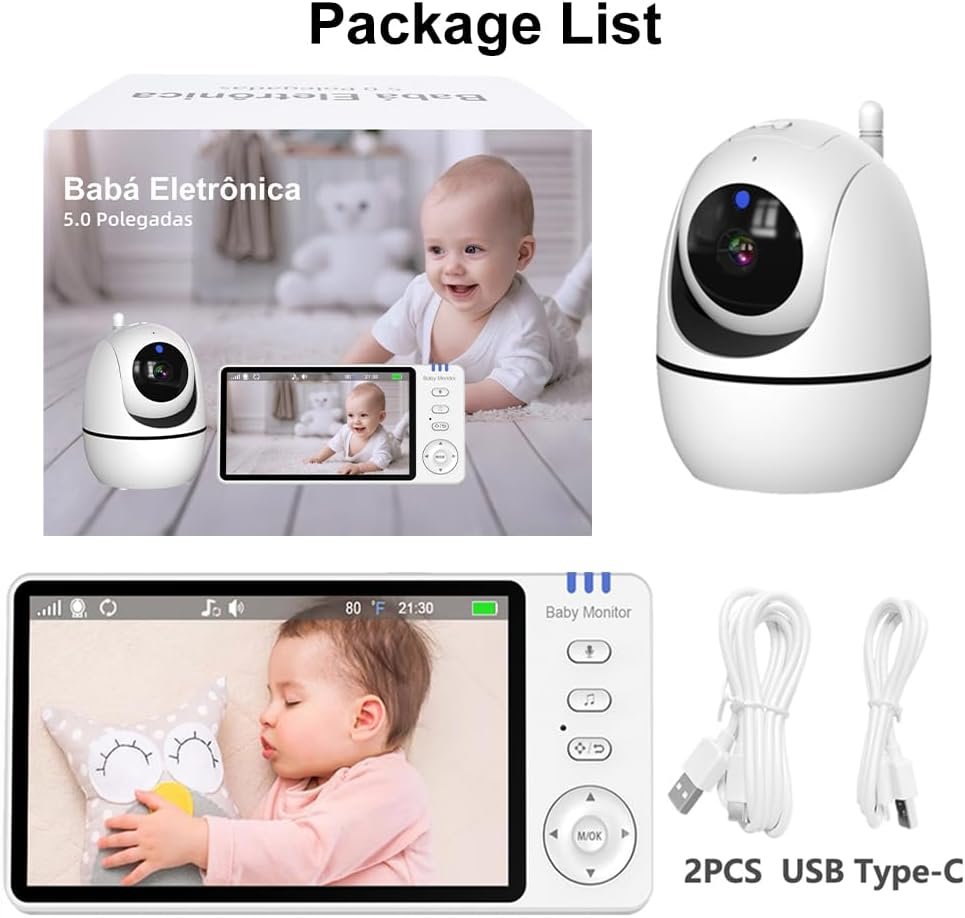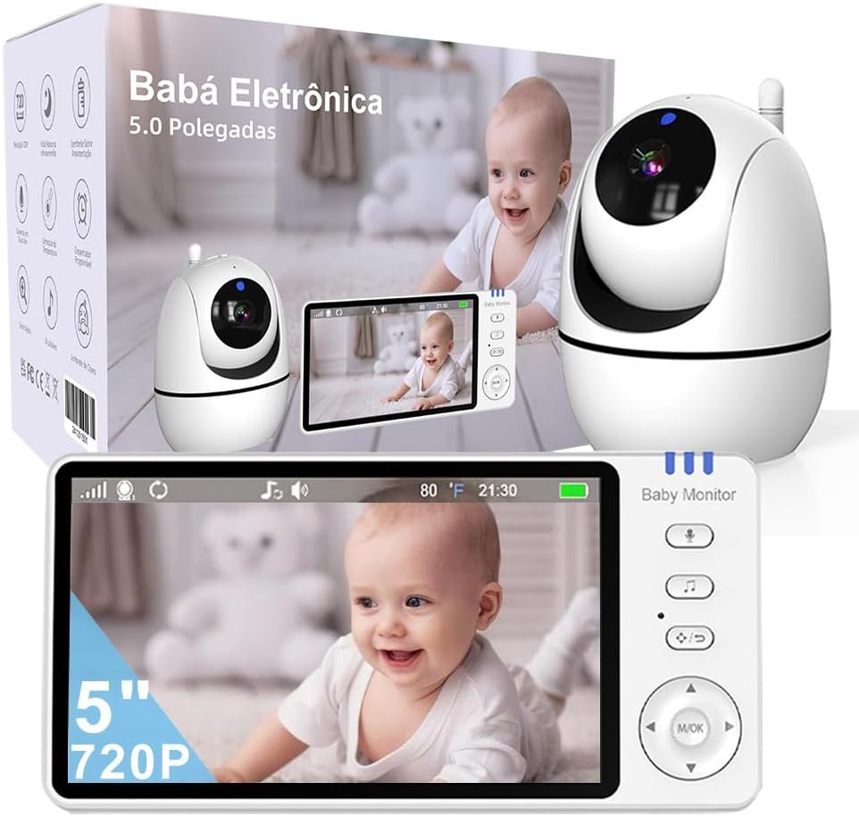 Babá Eletronica, 5.0″ HD 720P Bebê Câmera com Tela, Tecnologia de sem fio FHSS de 2,4 GHz, Áudio Bidirecional, Monitoramento Temperatura, Visão Noturna, Zoom Digital, Detecção De Som Vox