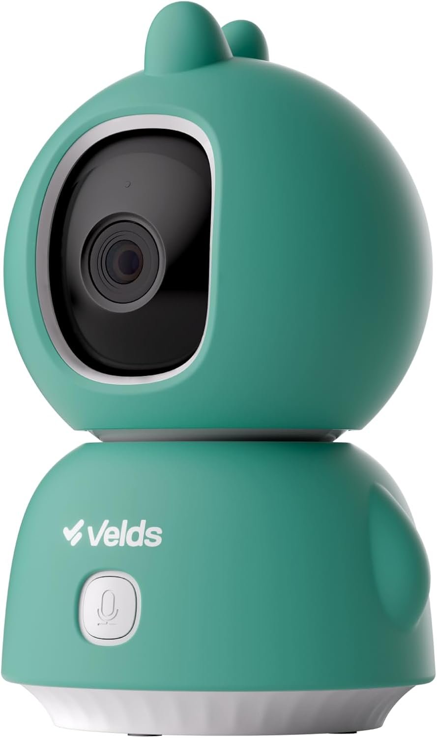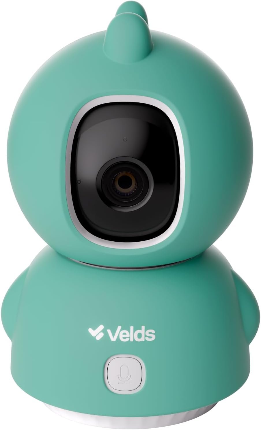 Babá Eletrônica Wi-Fi Velds, Visão Noturna, Detecção de Choro, Sensor de Temperatura, Áudio Bidirecional, Armazenamento até 256GB, Câmera Monitor de Bebê com Capinha Verde Dragão