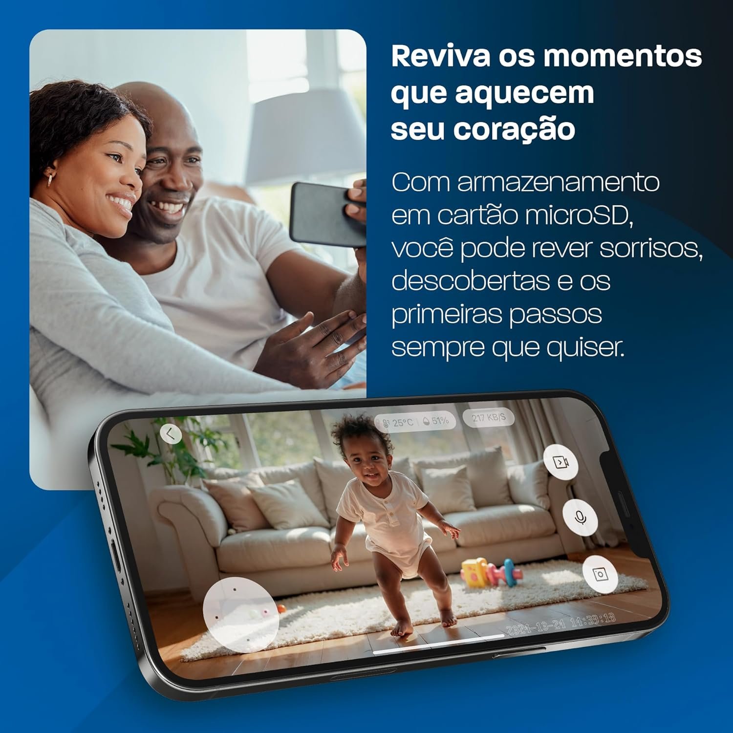 Armazenamento Seguro com Suporte a Cartão SD de até 256GB (não incluso): Grave os momentos mais importantes de forma segura, com armazenamento local