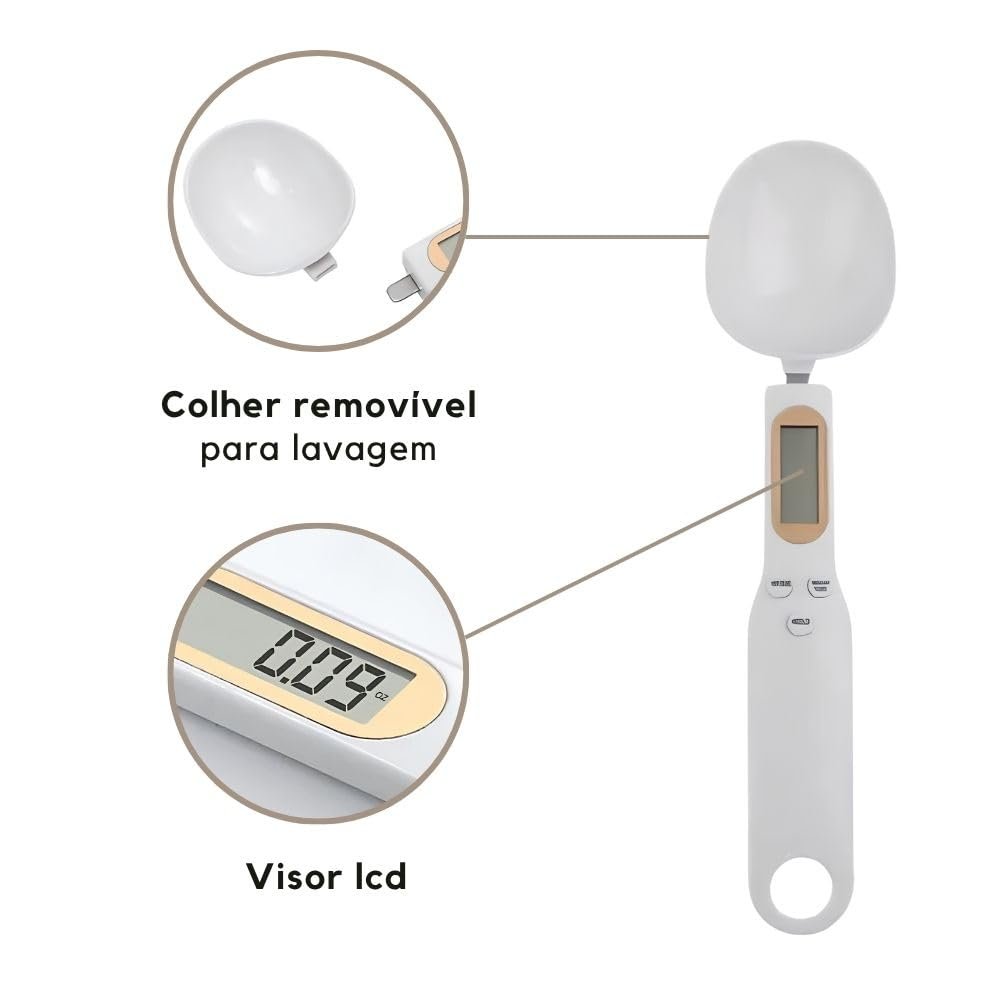 Colher Medidora Digital com Balança de Precisão para Cozinha, Dieta e Suplementos