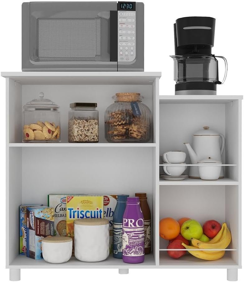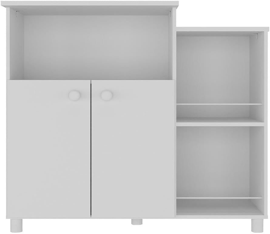 Balcão Fruteira Multimóveis para Forno e Micro-ondas, 2 Portas, Nicho para Galão de Água, Cozinha/Lavanderia – Branco Premium