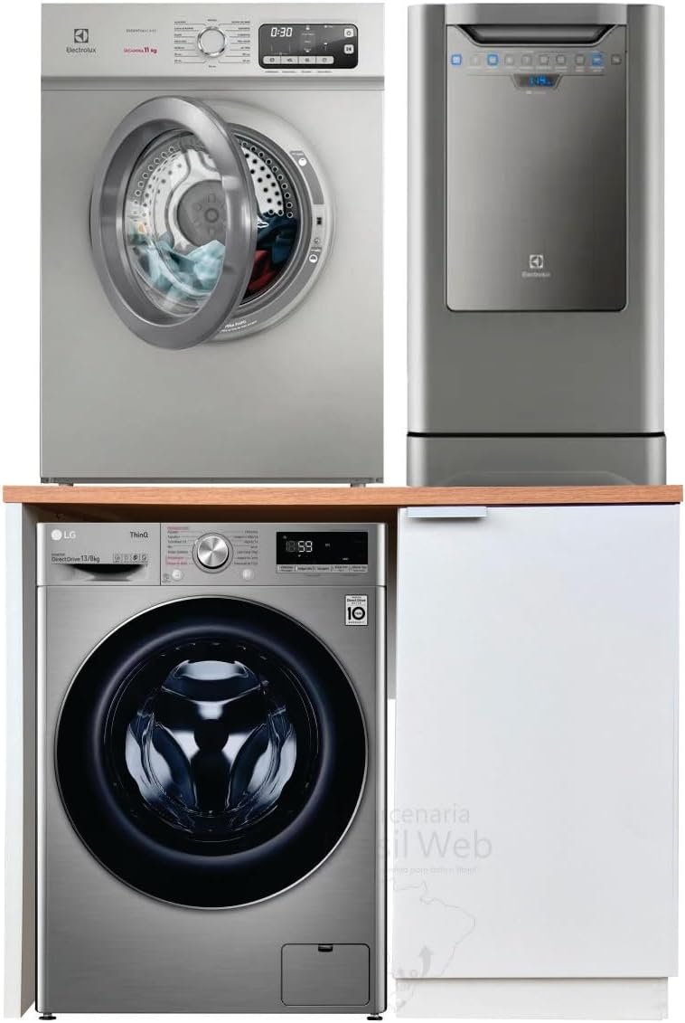 Bancada com balcão para embutir Lava e Seca, bancada para sobrepor Secadora e Lava louças