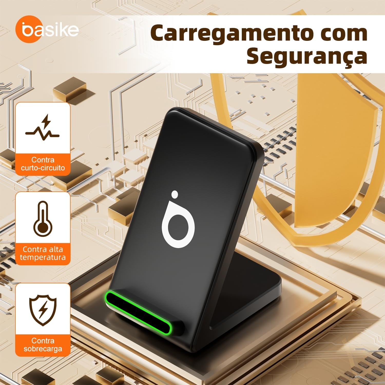Carregue seu smartphone com rapidez, eficiência e longe de fios com uma potência de 15W que apenas a Basike pode lhe oferecer.