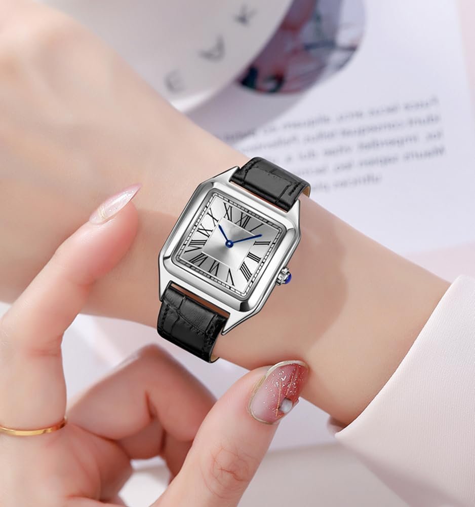 BESTKANG Relógio de pulso moderno retrô quadrado para mulheres, clássico, numeral romano, analógico, quartzo