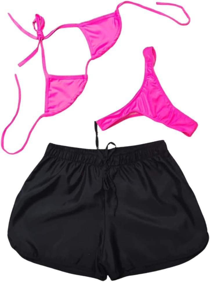 Este elegante conjunto de banho trikini de 3 peças é a escolha perfeita para os dias de praia e piscina. O conjunto inclui um biquíni azul vibrante com top triangular amarração e calcinha confortável, complementado por um short preto versátil. O top possui alças ajustáveis para um ajuste personalizado, enquanto a calcinha oferece cobertura moderada. O short preto é confeccionado em tecido leve e de secagem rápida, com cintura elástica e cordão para ajuste ideal. Este conjunto versátil permite diferentes combinações, podendo ser usado junto ou separadamente. Ideal para diversos tipos de corpo, o conjunto oferece conforto e estilo para suas atividades à beira-mar. O material resistente à água salgada e ao cloro mantém a forma e a cor mesmo após vários usos. Disponível em diversos tamanhos para garantir o ajuste perfeito.