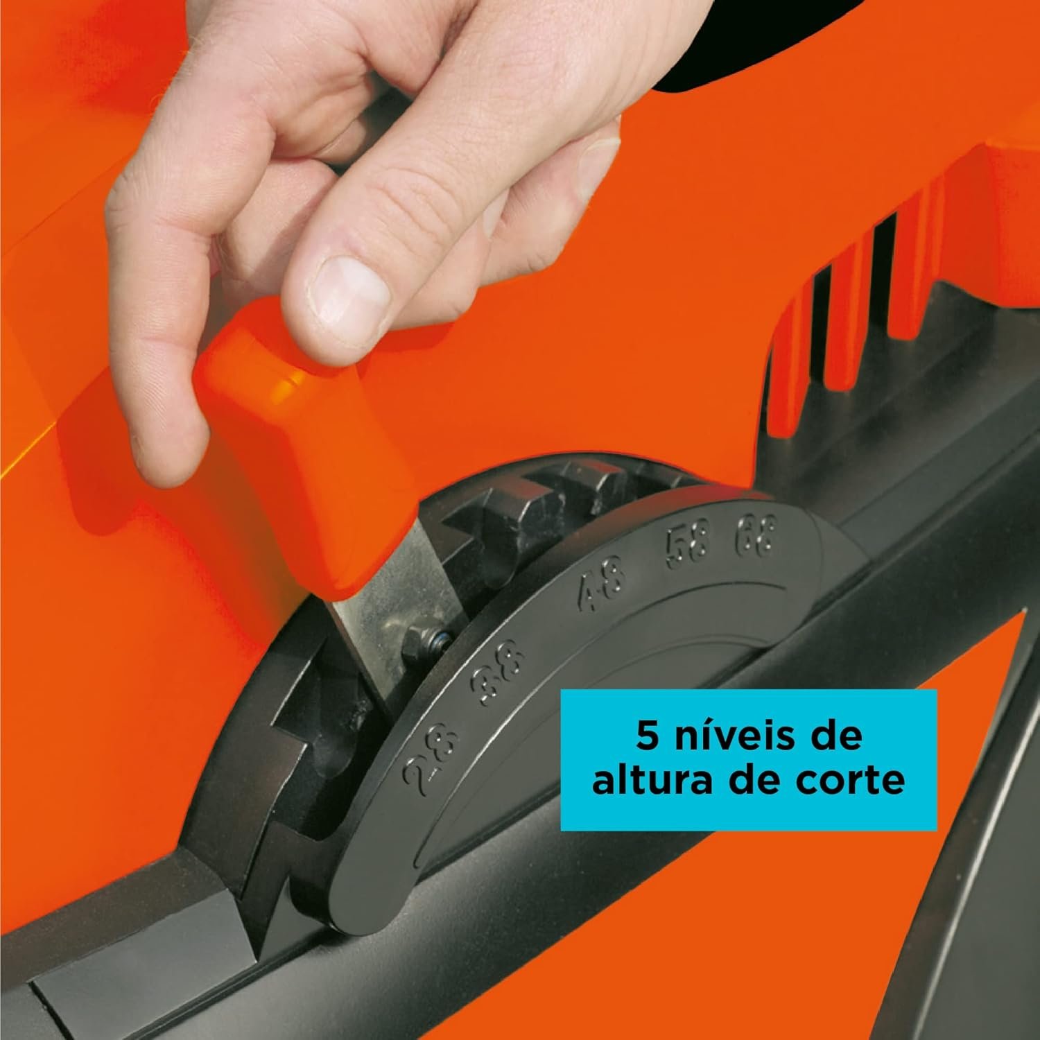 Motor com duplo isolamento e 5 níveis de altura de corte para proporcionar desempenho seguro e personalizado