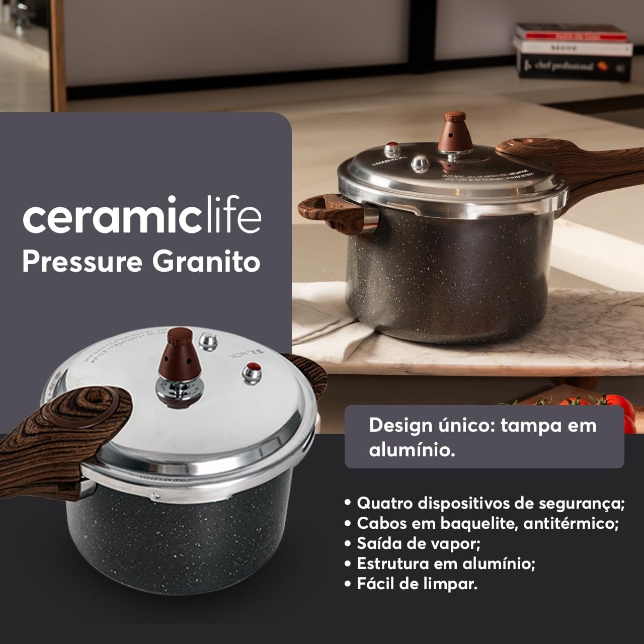 Brinox – Panela de Pressão Ceramic Life com Fundo de Indução 4,2L – Granito