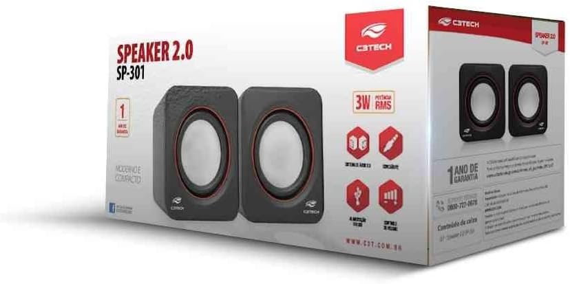 C3Tech Caixa de som SP-301BK Preto – Sistema de audio 2.0 P2 Com Blindagem Eletromagnética alimentacao via porta USB