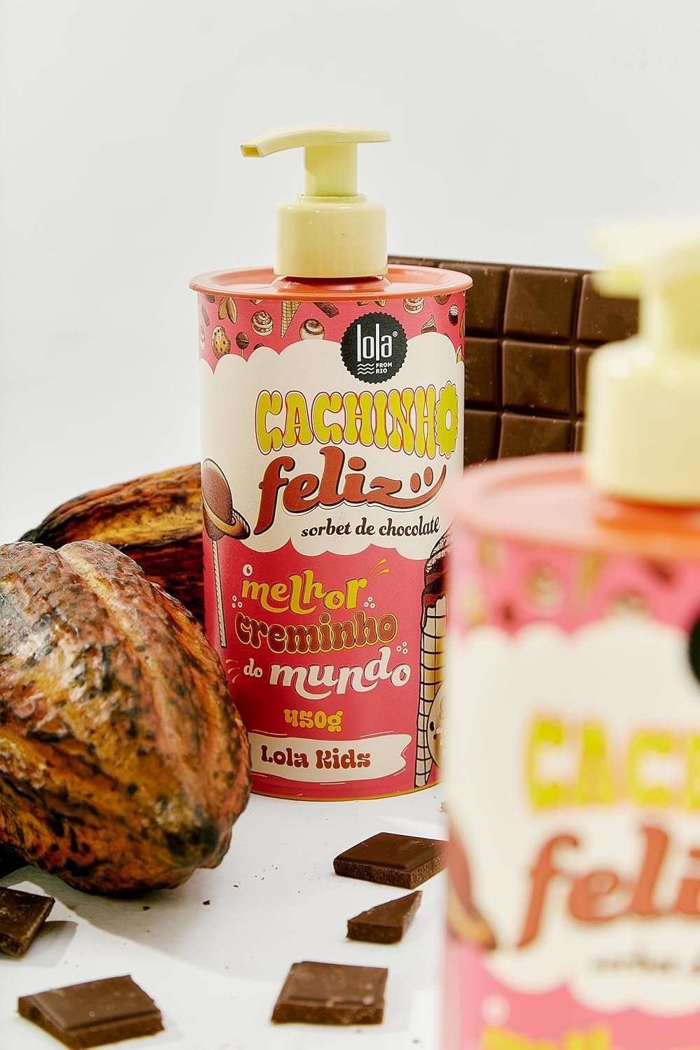 O que sou Com manteiga de Ucuuba, extratos de maçã e abacaxi, desembaraço, hidrato, deixo os cachinhos definidos e naturais o dia todo. À medida que seu filho cresce, as necessidades do seu cabelo mudam e por esse motivo Salada de Frutas Cachinho Feliz! é formulado com ingredientes de origem natural e especialmente indicado para cabelos com cur vatura de 3B a 4C. Define e ativa os cachos com efeito memorizador de até 24 horas. Uso diário. Especialmente formulado para cabelos cacheadinhos que necessitam de nutrição mais poderosa. Com manteiga de Ucuúba, Óleo de Castanha do Pará e Extrato de Cacau, desembaraço, hidrato, deixo os cachinhos saltitantes, definidos e naturais o dia todo. Sou formulado para nutrir, suavizar, fortalecer e modelar os cachos. À medida que seu filho cresce, as necessidades do seu cabelo mudam e por esse motivo Sorbet de Chocolate Cachinho Feliz! é formulado com ingredientes de origem natural e especialmente indicado para cabelos com curvatura de 3B a 4C. Nutre, define e ativa os cachos com efeito memorizador de até 24 horas. Uso diário. Ah, e embora o meu nome de sorbet de chocolate, eu não sou comestível!