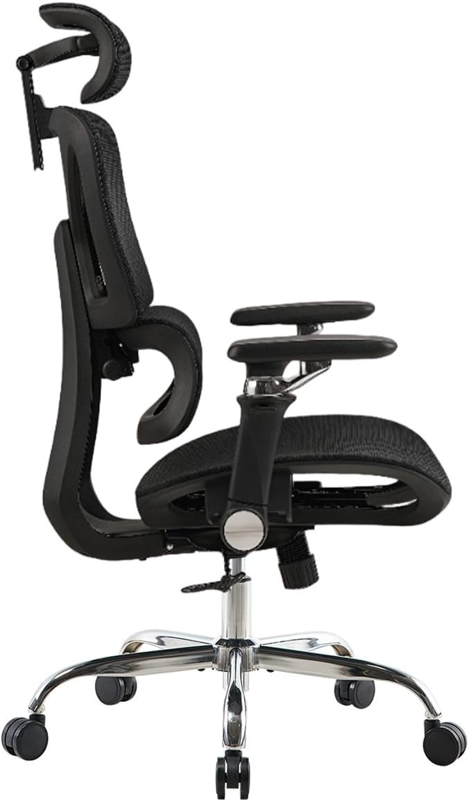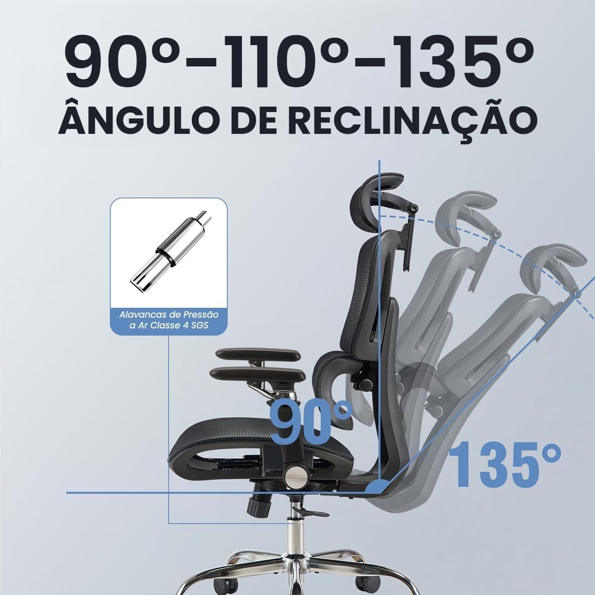 Tecido Respirável + Design de Alta Capacidade de Carga——A cadeira é revestida com tecido respirável e elástico de alta qualidade, que mantém a ventilação e o conforto mesmo após longas horas de uso. Ideal para longos períodos de trabalho ou lazer. Além disso, a estrutura robusta suporta até 150KG, garantindo uma experiência segura e confortável para pessoas de diferentes tipos de corpo.Apoio Lombar e de Pescoço Ajustáveis, Conforto Personalizado——A cadeira conta com um sistema de apoio lombar elástico adaptativo, que se ajusta automaticamente à curvatura das suas costas, proporcionando um suporte contínuo e confortável. O apoio lombar possui 4 ajustes de altura, permitindo que você personalize a posição para máxima comodidade. Além disso, o apoio de pescoço é ajustável, permitindo que você encontre a altura e o ângulo ideais para aliviar a tensão no pescoço e manter a postura correta.Ajuste de Força do Apoio das Costas + Inclinação de 90° a 135°——A base da cadeira conta com um controle de ajuste de força do apoio das costas, permitindo que você modifique a firmeza do encosto conforme necessário. O encosto também oferece uma inclinação de 90° a 135°, proporcionando flexibilidade para trabalhar de maneira confortável e, quando necessário, relaxar em um ângulo mais reclinado, aliviando a pressão e proporcionando conforto durante o descanso.Apoio de Braços com Ajuste de Altura Oculto——O apoio de braços vem com um botão de ajuste de altura oculto, proporcionando um design elegante e funcional. Com um simples toque, você pode ajustar a altura dos apoios para garantir o suporte ideal para os braços e reduzir a pressão nos ombros, proporcionando maior conforto durante o uso prolongado.Amplamente Utilizado——Esta cadeira ergonômica é perfeita para uma variedade de ambientes, como escritórios, home offices, salas de reunião e até para momentos de lazer, como jogos. Seja para longas sessões de trabalho, maratonas de games ou reuniões de negócios, ela oferece todo o suporte necessário para manter uma postura saudável, aliviando a tensão e promovendo conforto durante o uso prolongado.