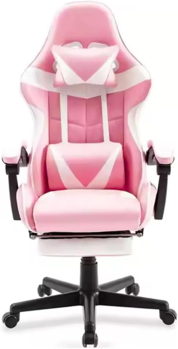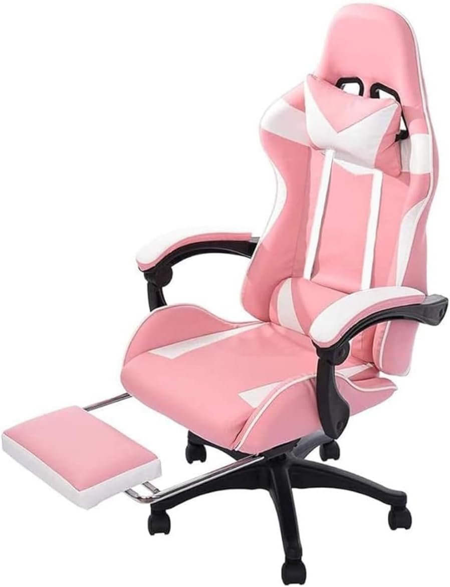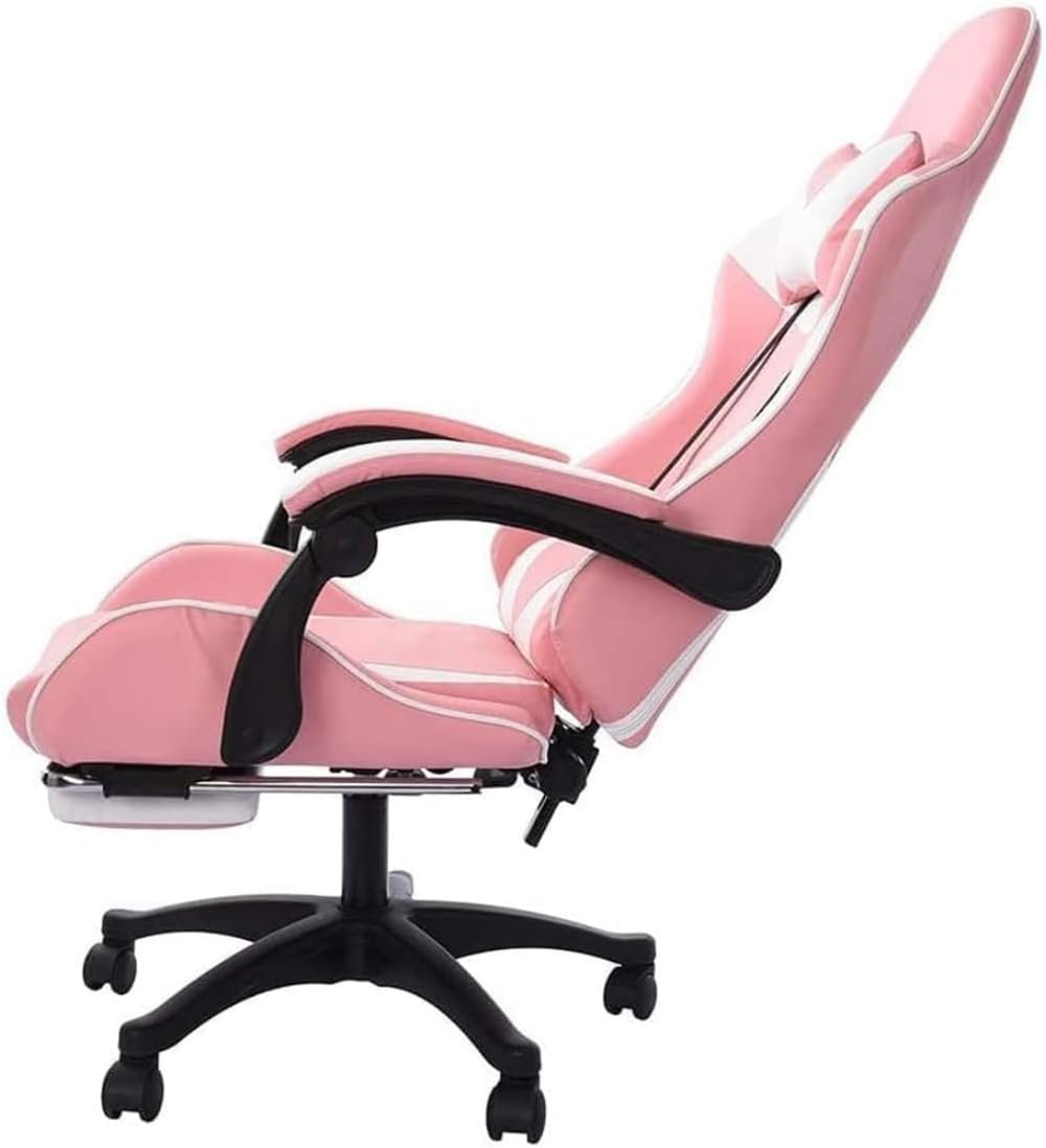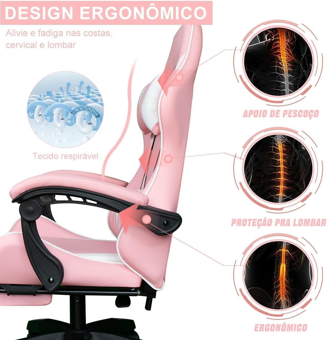 Cadeira Gamer Ergonômica Reclinável Com Apoio De Pés Premium Preto Branco Rosa