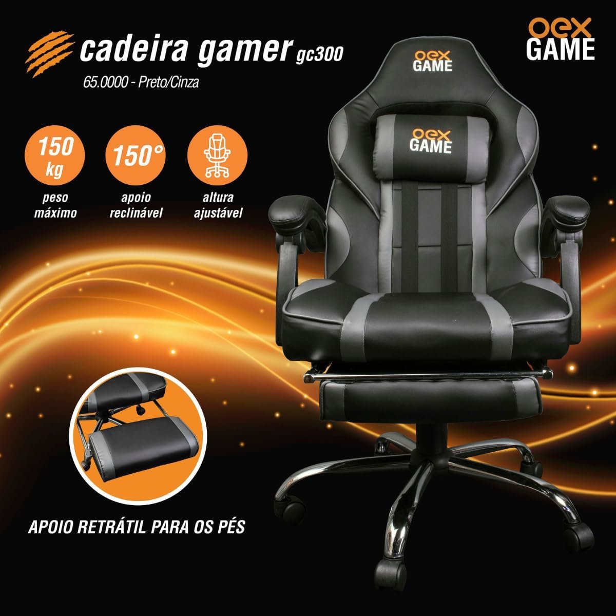 Cadeira Gamer Estofado Couro Sintético 180Kg OEX Game