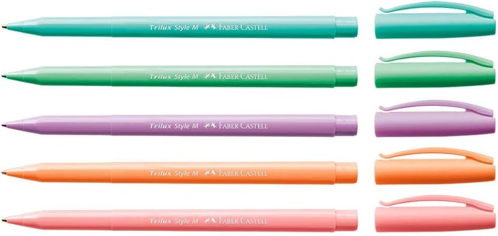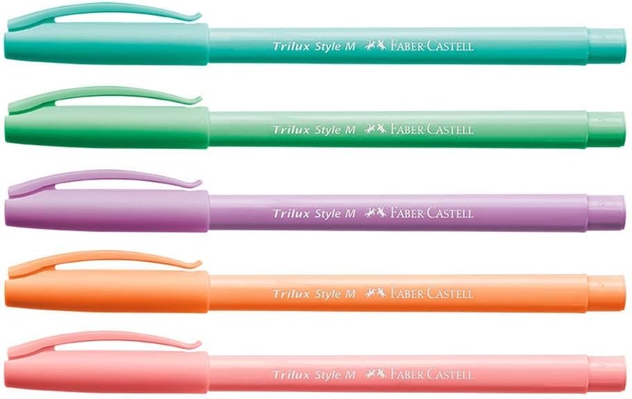 Caneta Esferográfica, Faber-Castell, Trilux Style Colors, Cores Pastéis,5 Unidades