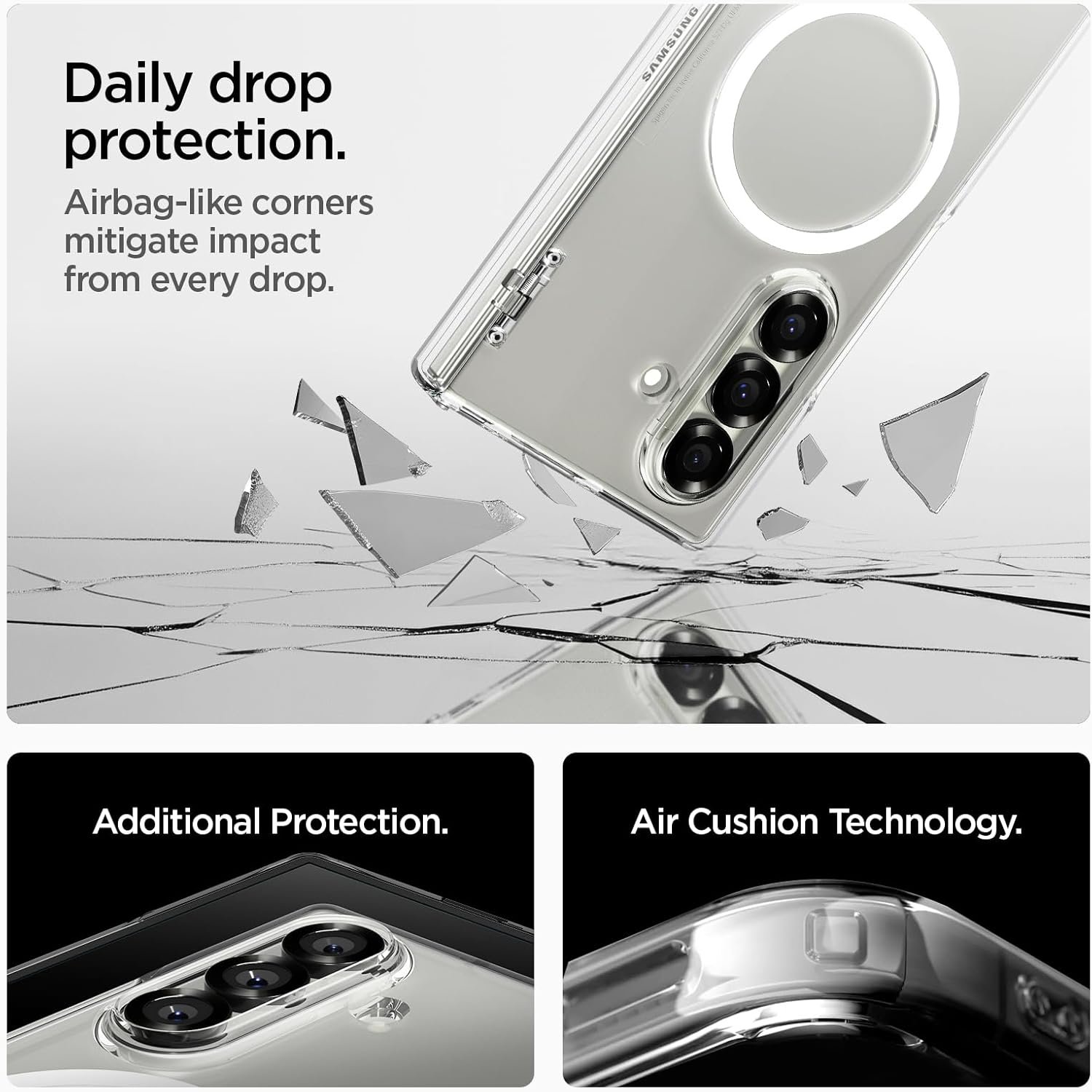 Capa Spigen para Galaxy Z Fold 7, Ultra Hybrid Pro [MagFit] projetada para Samsung Galaxy Z Fold 7 – Branco transparente