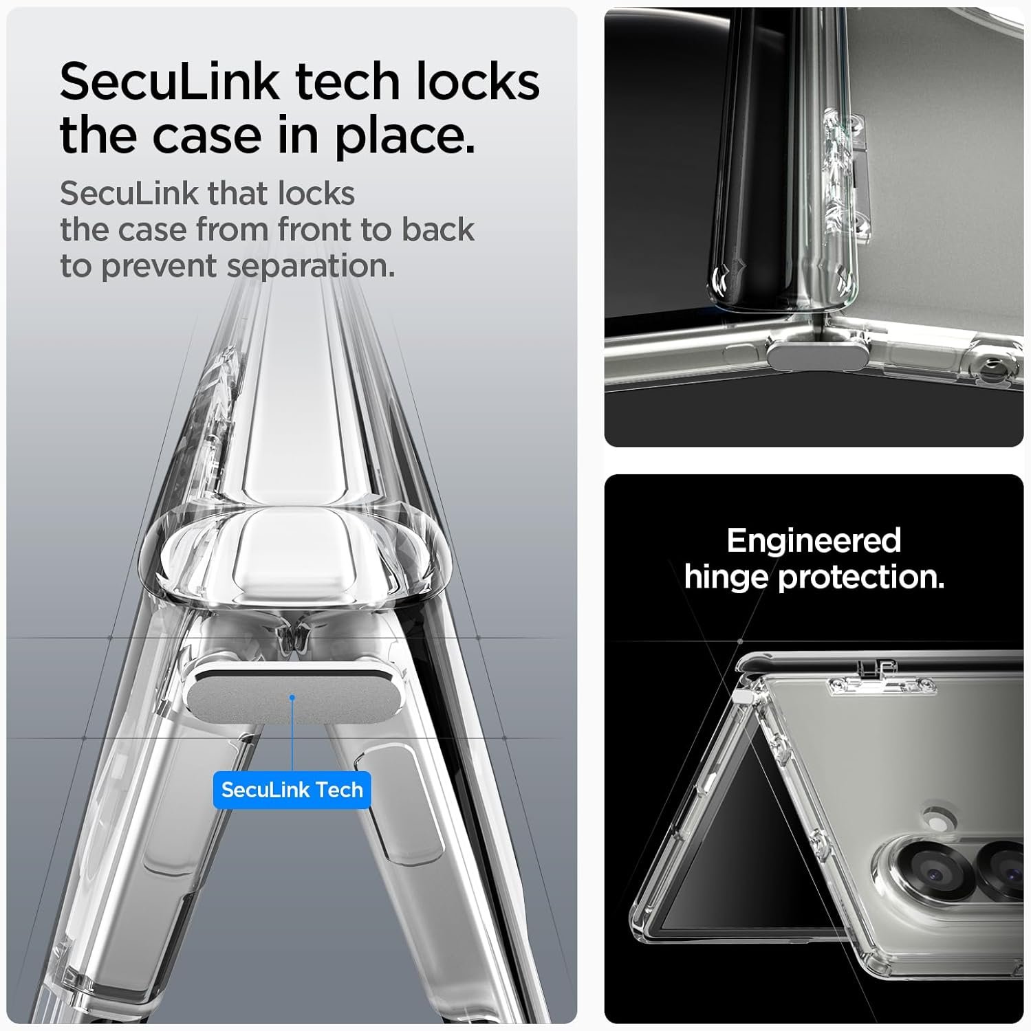 Seculink; uma nova tecnologia à base de metal que conecta com segurança a frente e a traseira para evitar a separação da capa