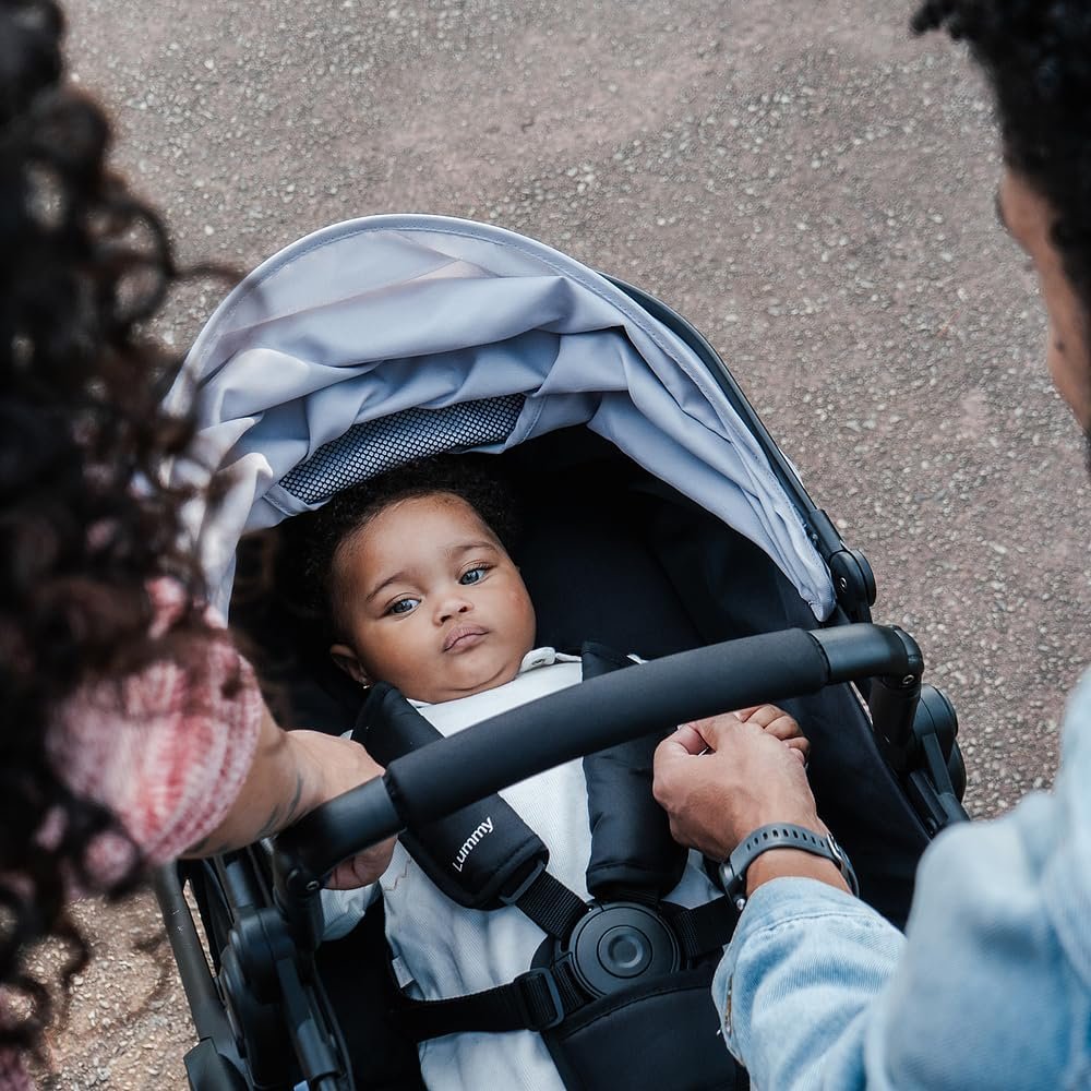 Desde os primeiros dias, o Carrinho Lummy tá pronto pra tudo: combina moisés e passeio, tem assento que vira, dobra junto da estrutura e tem amortecedor nas 4 rodas.