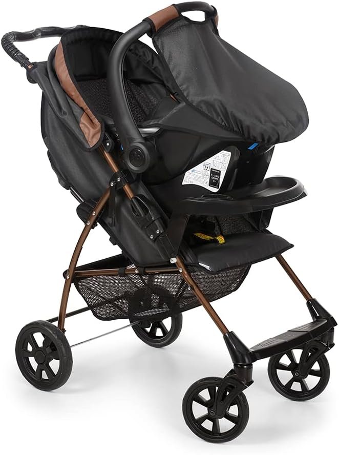 Sistema de viagem completo: Inclui carrinho e bebê conforto, facilitando o transporte do seu filho