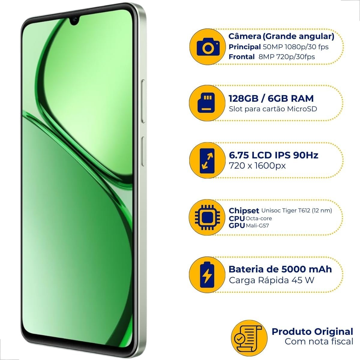 Celular Realme C63 128gb Dual Sim 6gb Smartphone Original Verde