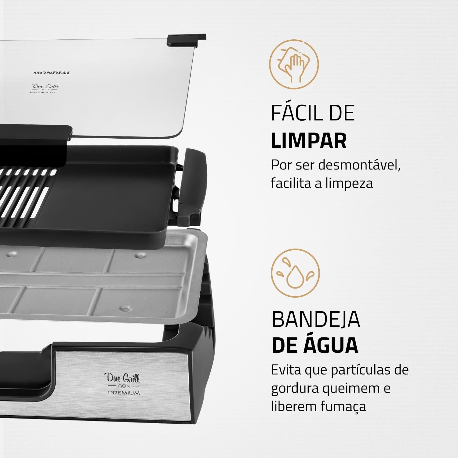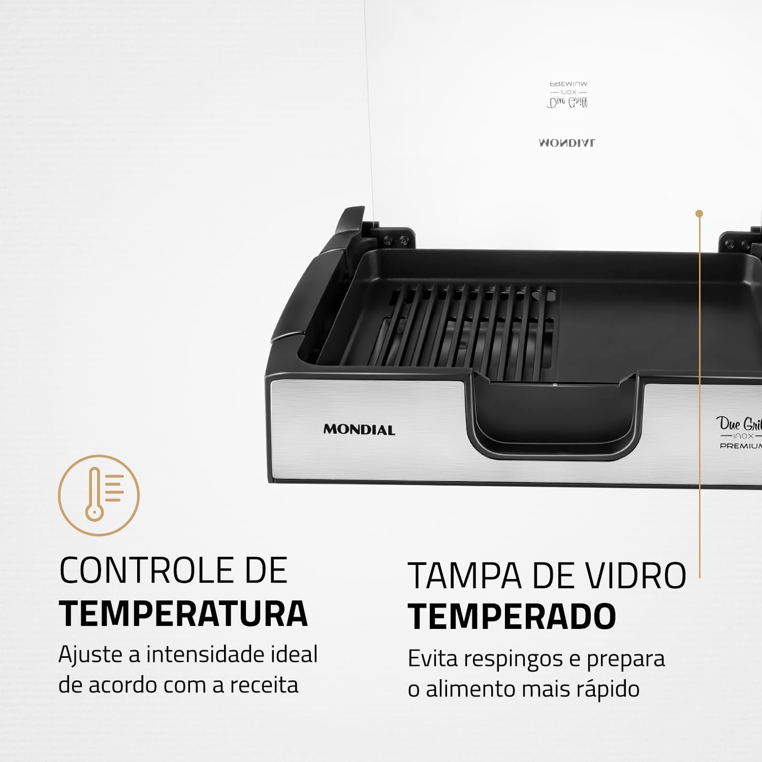 Chapa Due Grill Premium, Mondial, Preto/Inox, 1270W, 110V – G-10