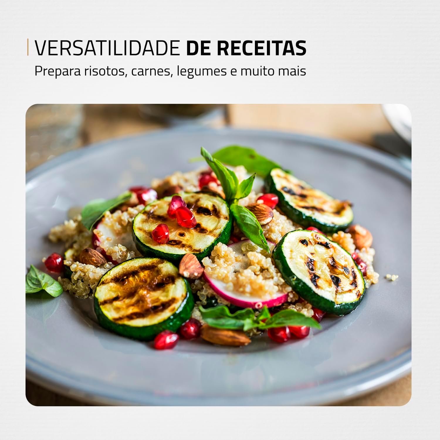 REVESTIMENTO ANTIADERENTE: Alimentação mais saudável: os alimentos deslizam facilmente e não grudam. Não é preciso adicionar óleo ou manteiga. São pratos mais saudáveis e que mantêm o sabor e as propriedades dos ingredientes.