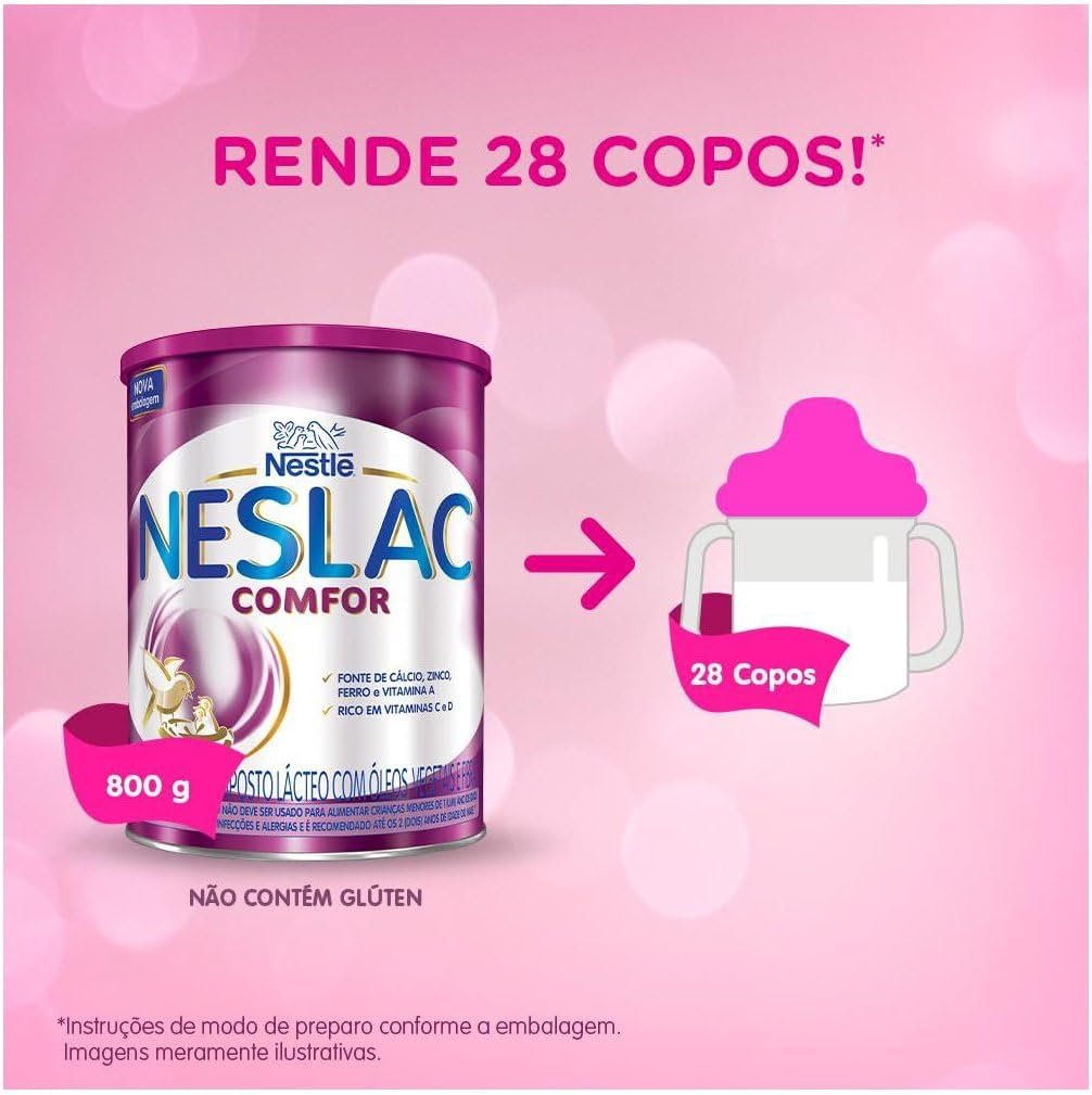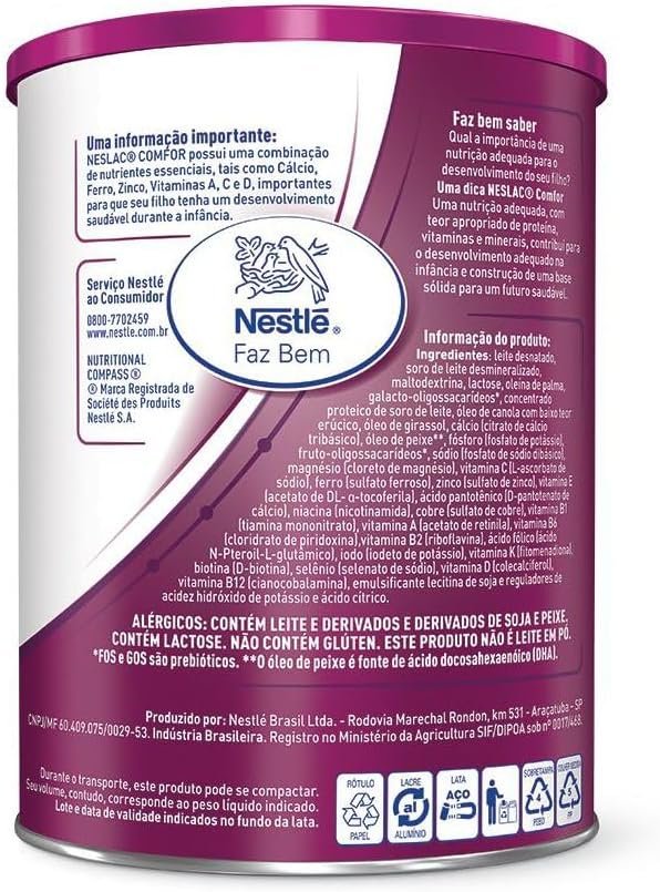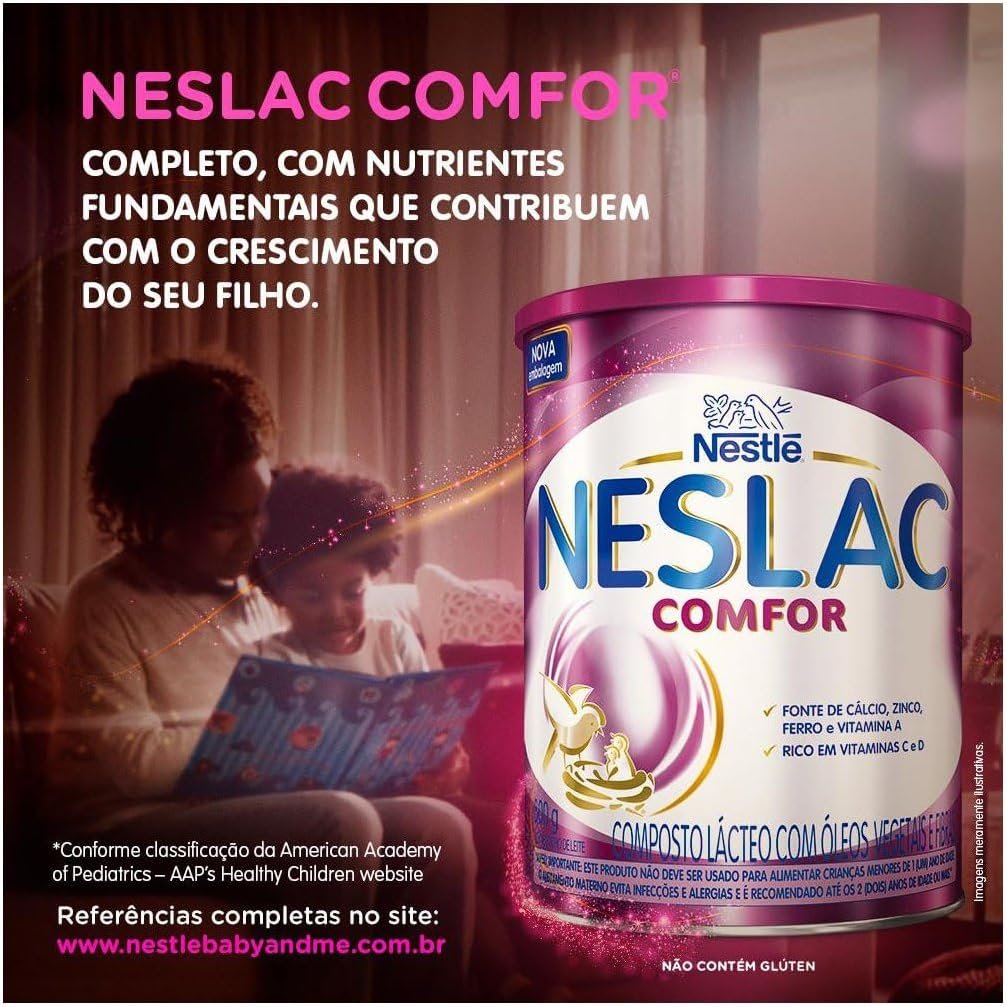NESLAC Comfor possui uma combinação de nutrientes essenciais que contribuem para o desenvolvimento das crianças na etapa pré-escolar, a partir dos 3 anos. NESLAC Comfor é um composto lácteo e, por isso, diferente do leite de vaca, contém adição de nutrientes e ingredientes importantes para o desenvolvimento das crianças: como vitaminas, minerais e fibras, além disso, não é adicionado dos açúcares sacarose, frutose e aromatizantes. Converse com o pediatra ou nutricionista do seu filho para receber orientações nutricionais adequadas.