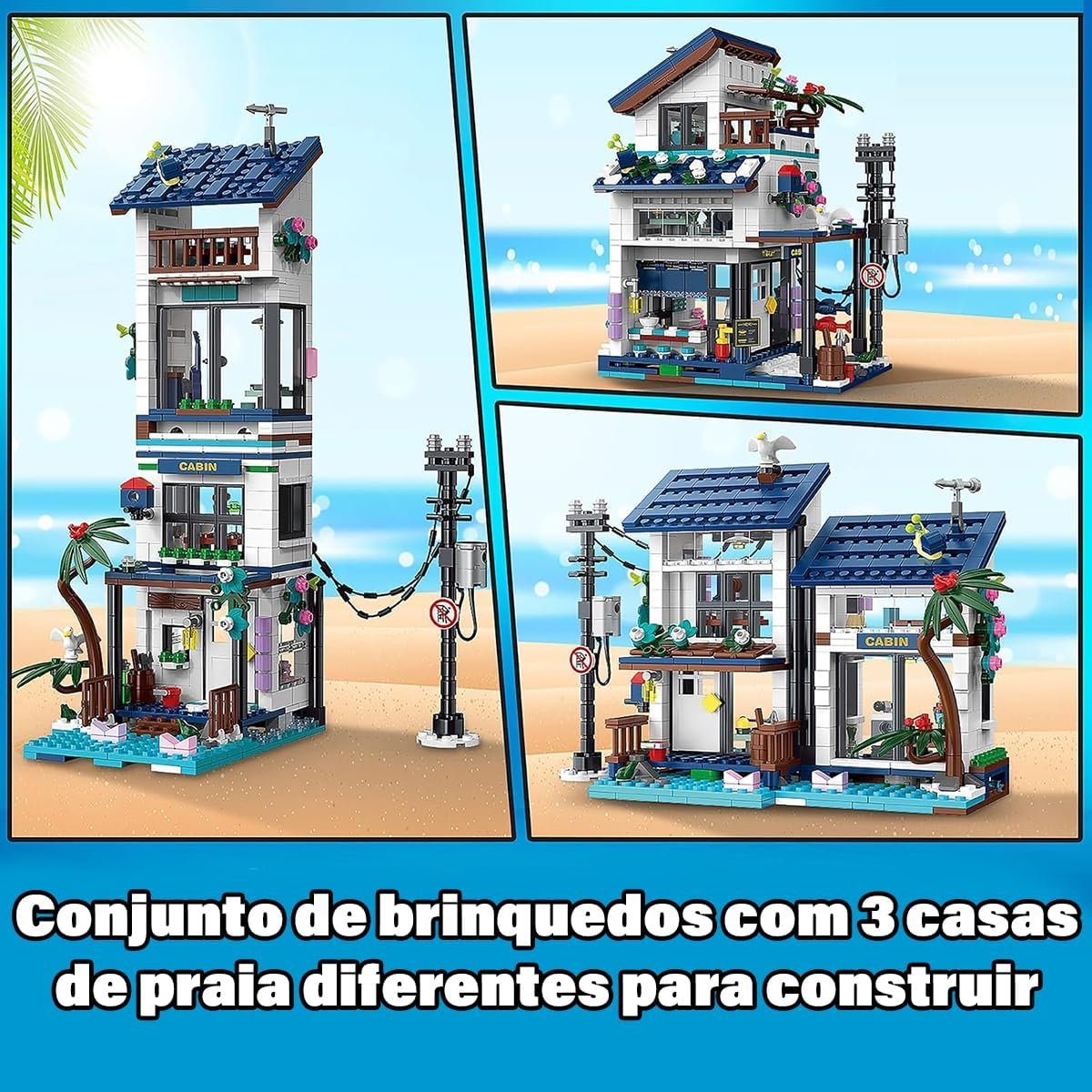 Conjunto de Blocos de Montar Construção de Casa de Praia – Modelo de Construção 3 em 1, Compatível com Blocos de 4,9 mm