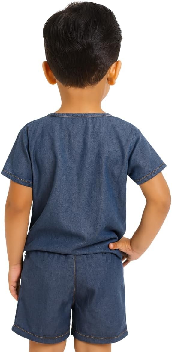 Conjunto Jeans Infantil Menino Camiseta + Bermuda – Kit 2 Peças Casual