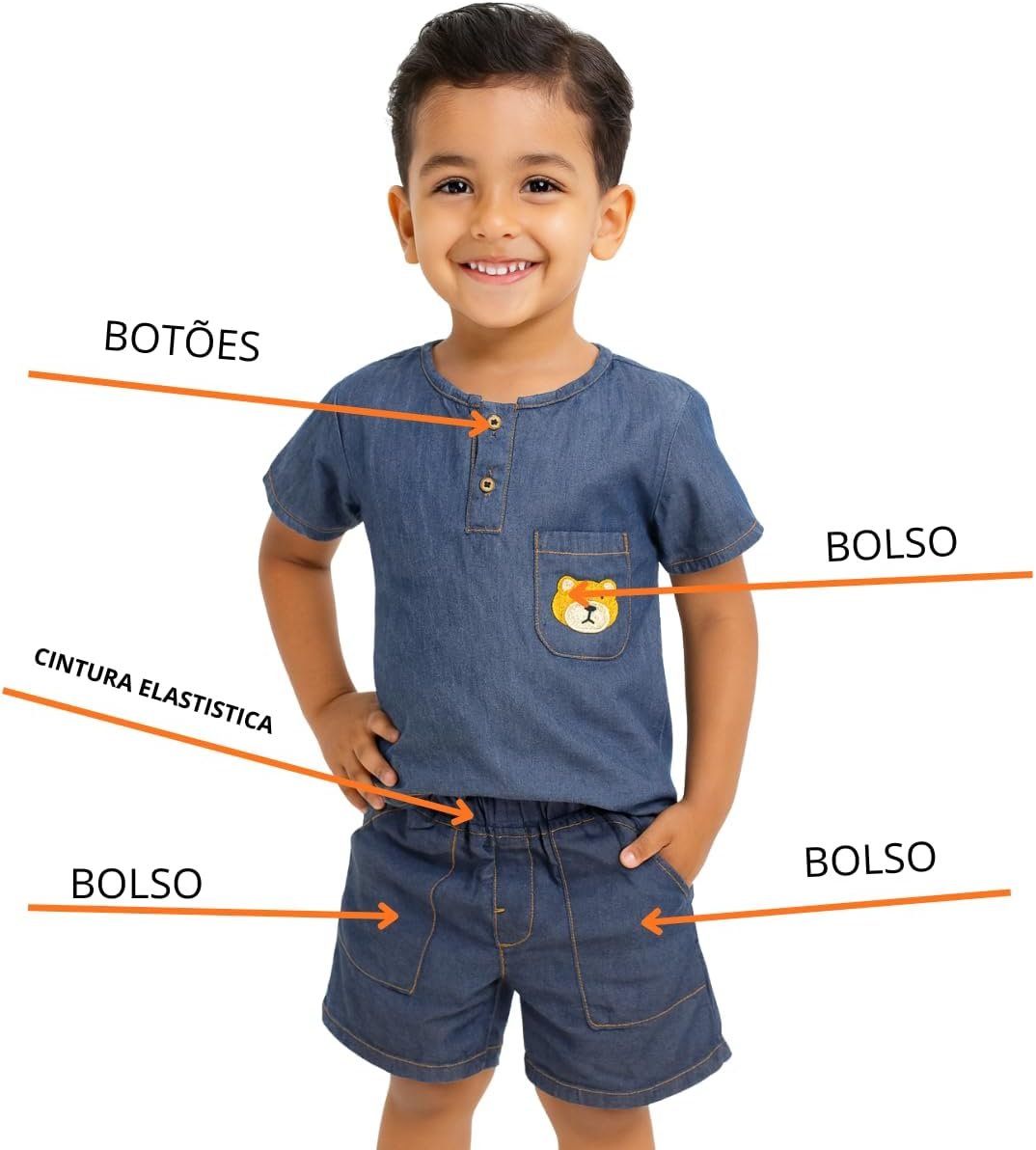👕✨ Conjunto Jeans Infantil Menino – Estilo, Conforto e Diversão em um só look! Deixe seu pequeno ainda mais estiloso com este lindo conjunto jeans infantil masculino, composto por camisa com botões e bolsinho bordado de ursinho + bermuda com elástico confortável. Feito em jeans leve e macio, é perfeito para o dia a dia, passeios e momentos de diversão, garantindo liberdade para brincar com muito charme! 🌟 Destaques do Produto: ✅ Tecido jeans leve e respirável ✅ Modelagem confortável e soltinha ✅ Elástico na cintura para melhor ajuste ✅ Bordado fofo de ursinho no bolso ✅ Ideal para o verão e todas as ocasiões 📏 Tamanhos disponíveis: Tamanho 2 – veste de 1 a 2 anos Tamanho 4 – veste de 3 a 4 anos Tamanho 6 – veste de 5 a 6 anos Tamanho 8 – veste de 7 a 8 anos 🧵 Composição: Jeans leve de algodão 🎯 Modelagem: Tradicional, confortável e soltinha 🌞 Indicado para: Passeios, festas, looks de verão e uso diário conjunto jeans menino | roupa infantil masculina verão | conjunto infantil masculino jeans | conjunto menino 2 4 6 8 anos | roupa infantil jeans | conjunto com bermuda e camisa jeans 💙 Garanta já o seu! Vista seu pequeno com o charme do jeans e o conforto que ele merece!