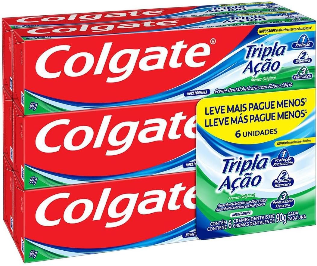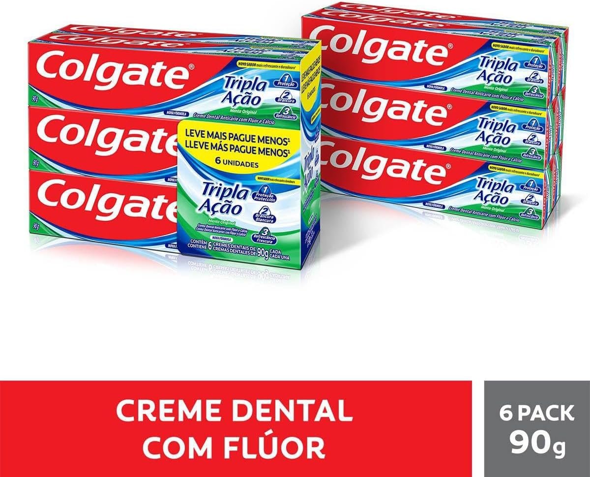 Creme Dental Colgate Tripla Ação Menta Original 90g 6 unidades
