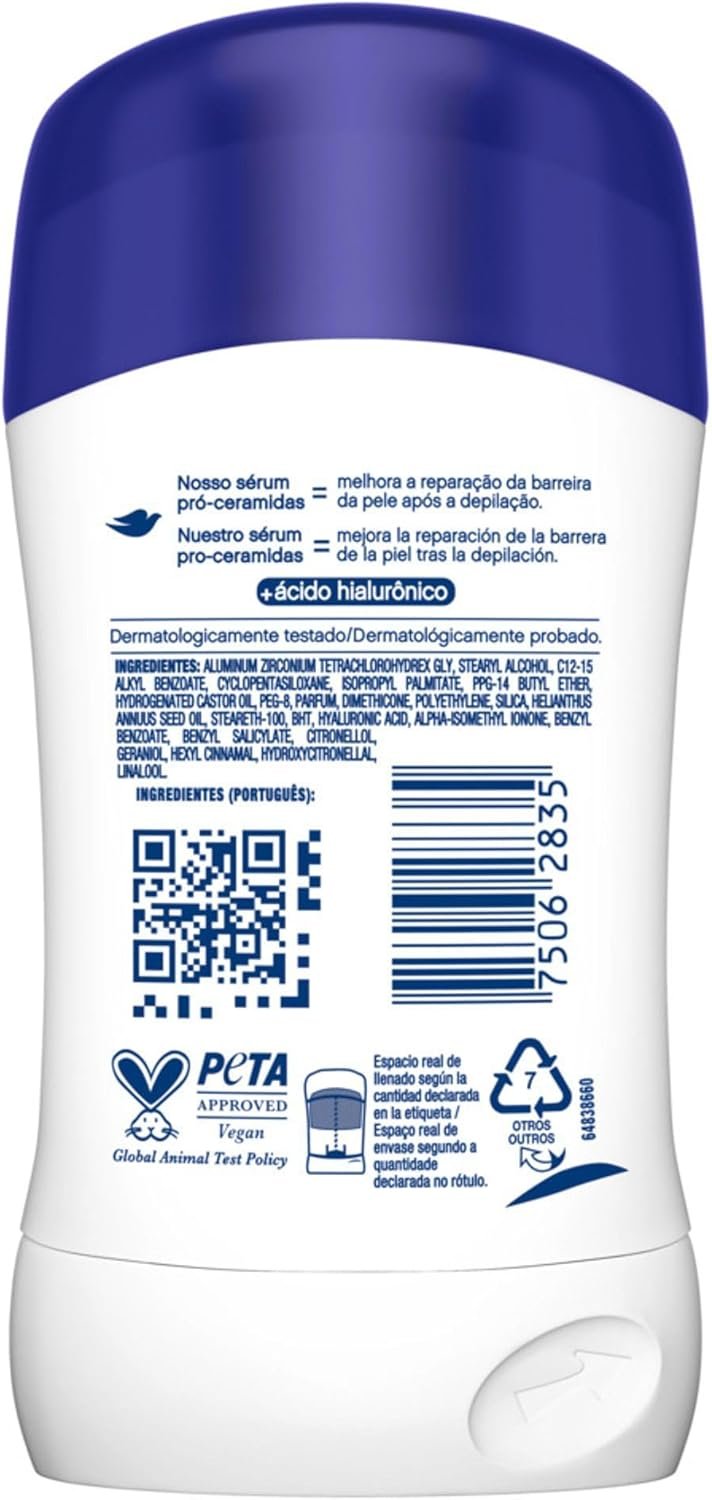 O Desodorante Antitranspirante Stick Dove Original com 1/4 de creme hidratante e vitamina E, cuida, protege e repara a pele das axilas desde o primeiro uso