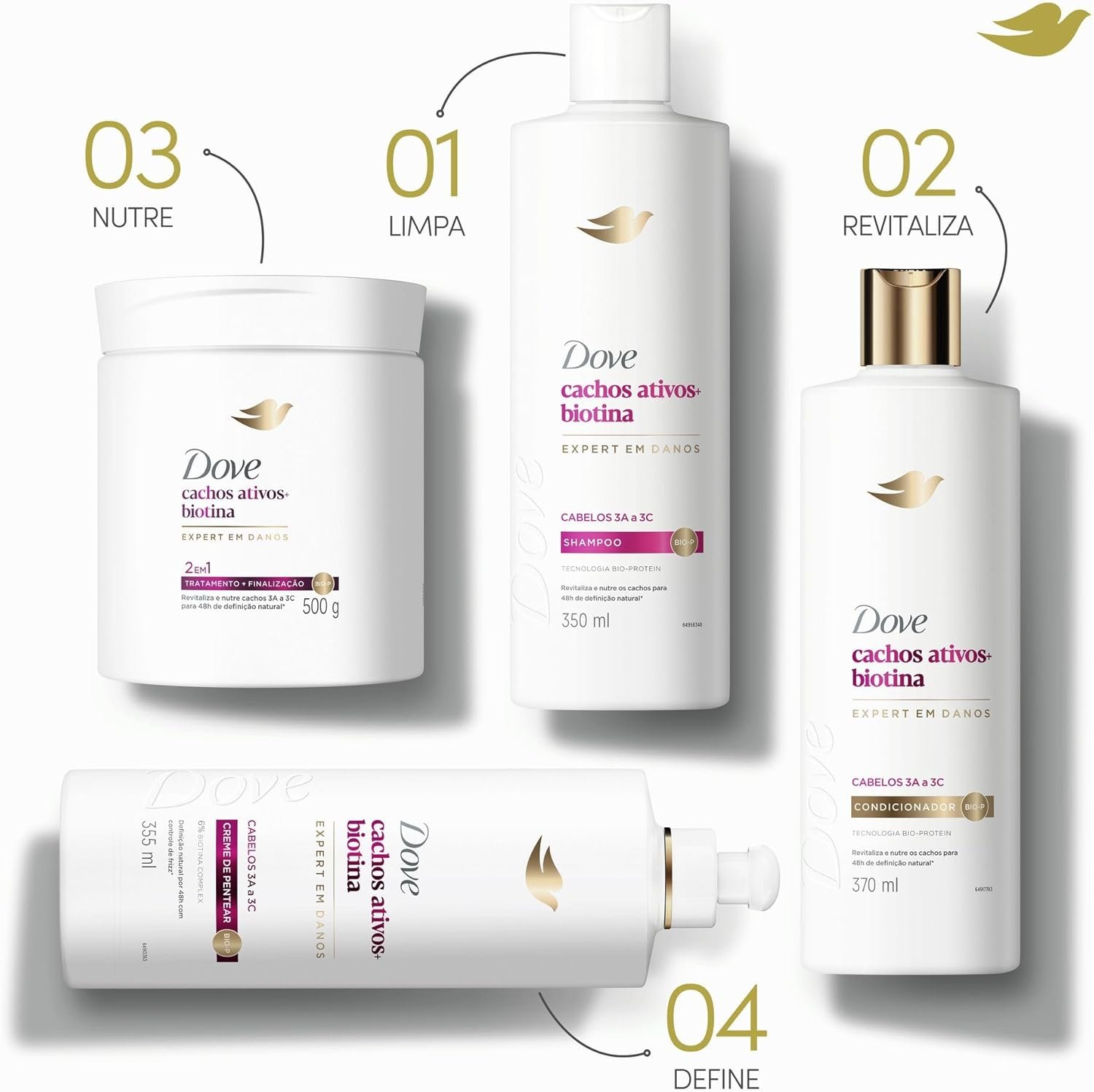 Dove tratamento profundo para cabelo cacheado com tecnologia patenteada Cachos Ativos + Biotina e Bio-Protein que regenera e protege a cutícula desde o 1 uso*