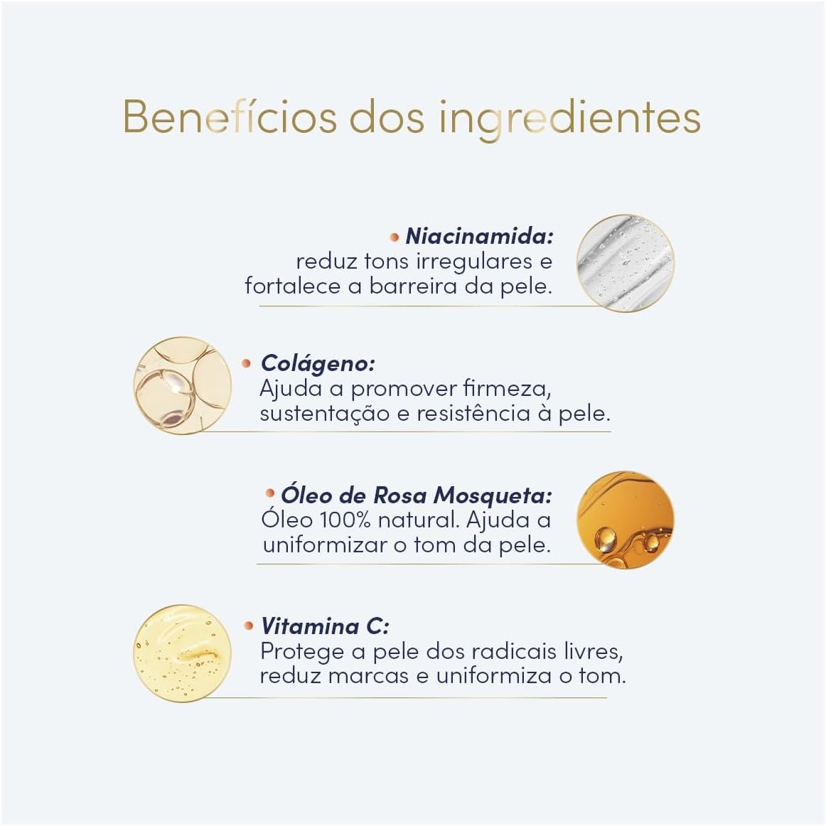 Fórmula enriquecida com colágeno vegano, vitamina C e óleo de rosa mosqueta