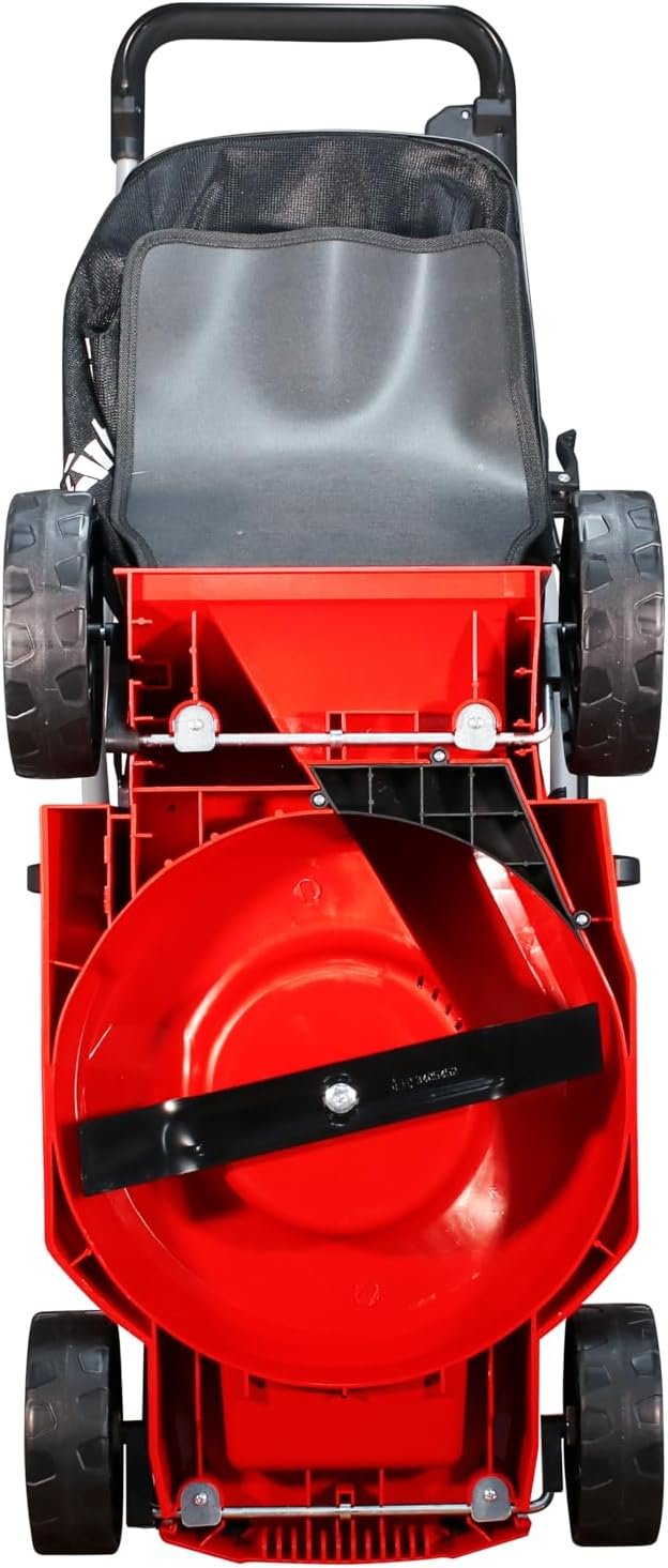 Indicação de preenchimento do saco coletor Recomendado para áreas de até 200 m2 Punho integrado para transporte Rodas largas com superfície que não danifica o gramado