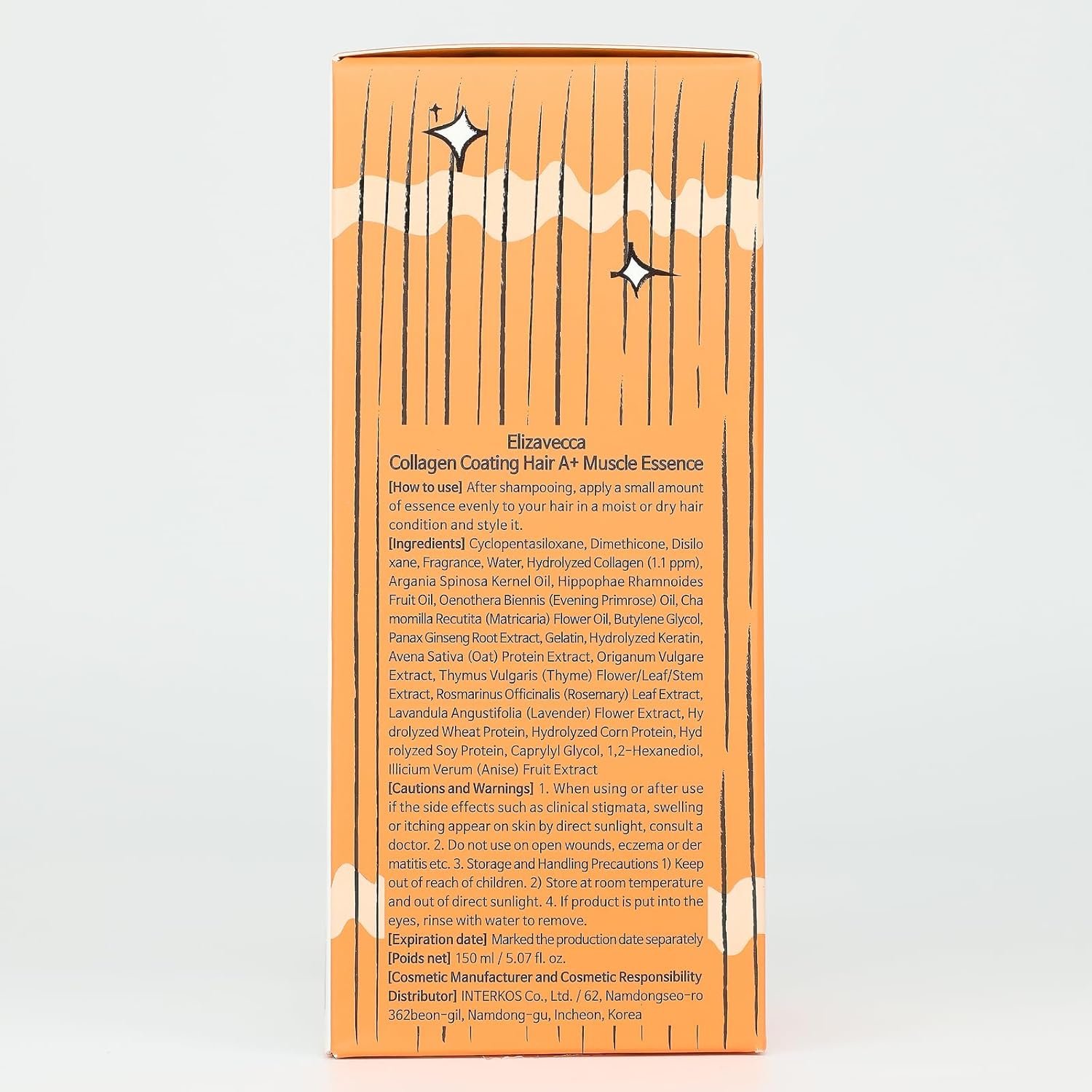 Elizavecca CER-100 revestimento de colágeno cabelo A+ essência muscular 150 ml/5,07 fl.oz. – Sérum essência capilar, K-Beauty