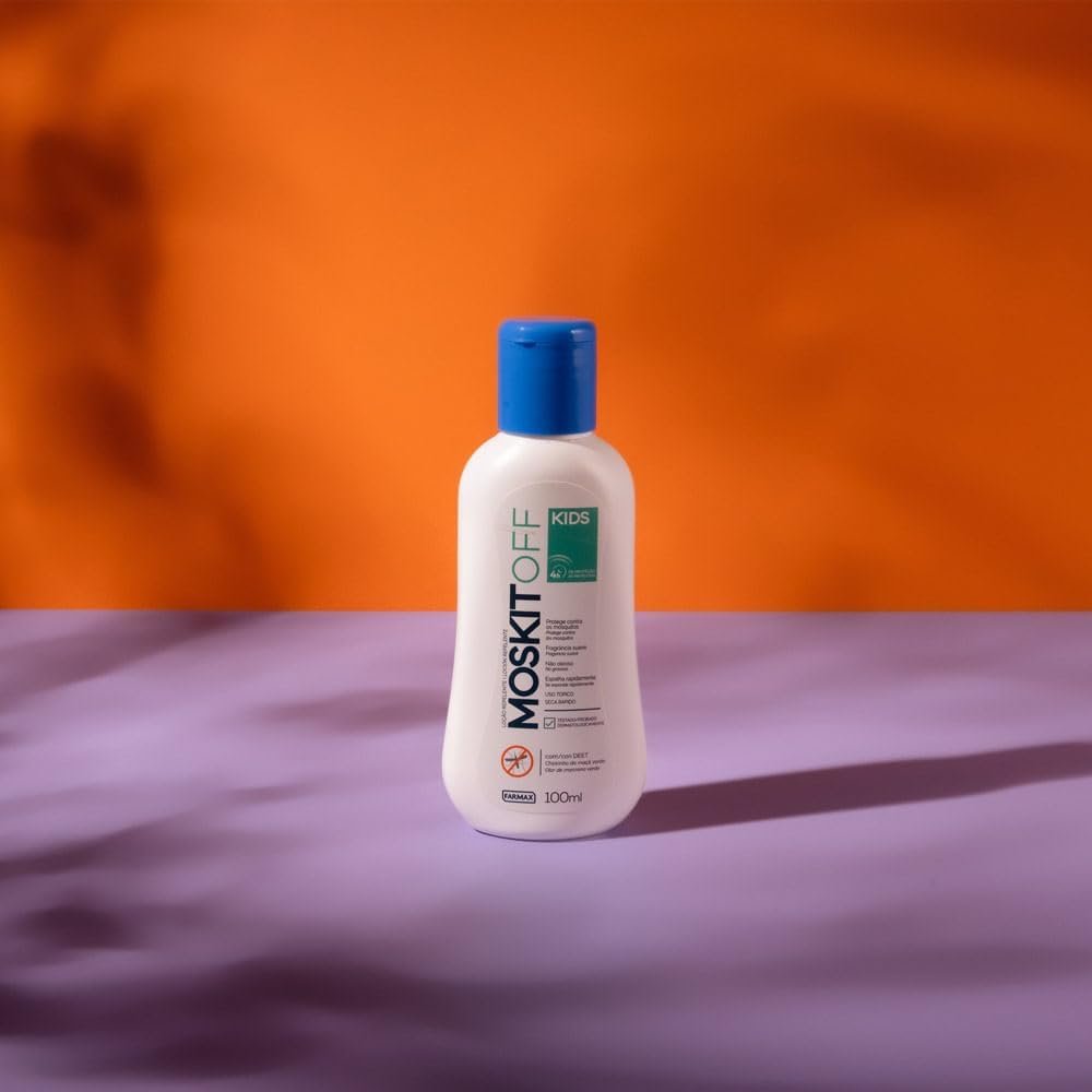 A Loção Repelente Kids com DEET Moskitoff protege a pele da criança contra mosquitos, inclusive os transmissores Aedes aegypti (dengue, febre amarela, zika, chikungunya) e Culex quinquefasciatus (pernilongos, borrachudos).